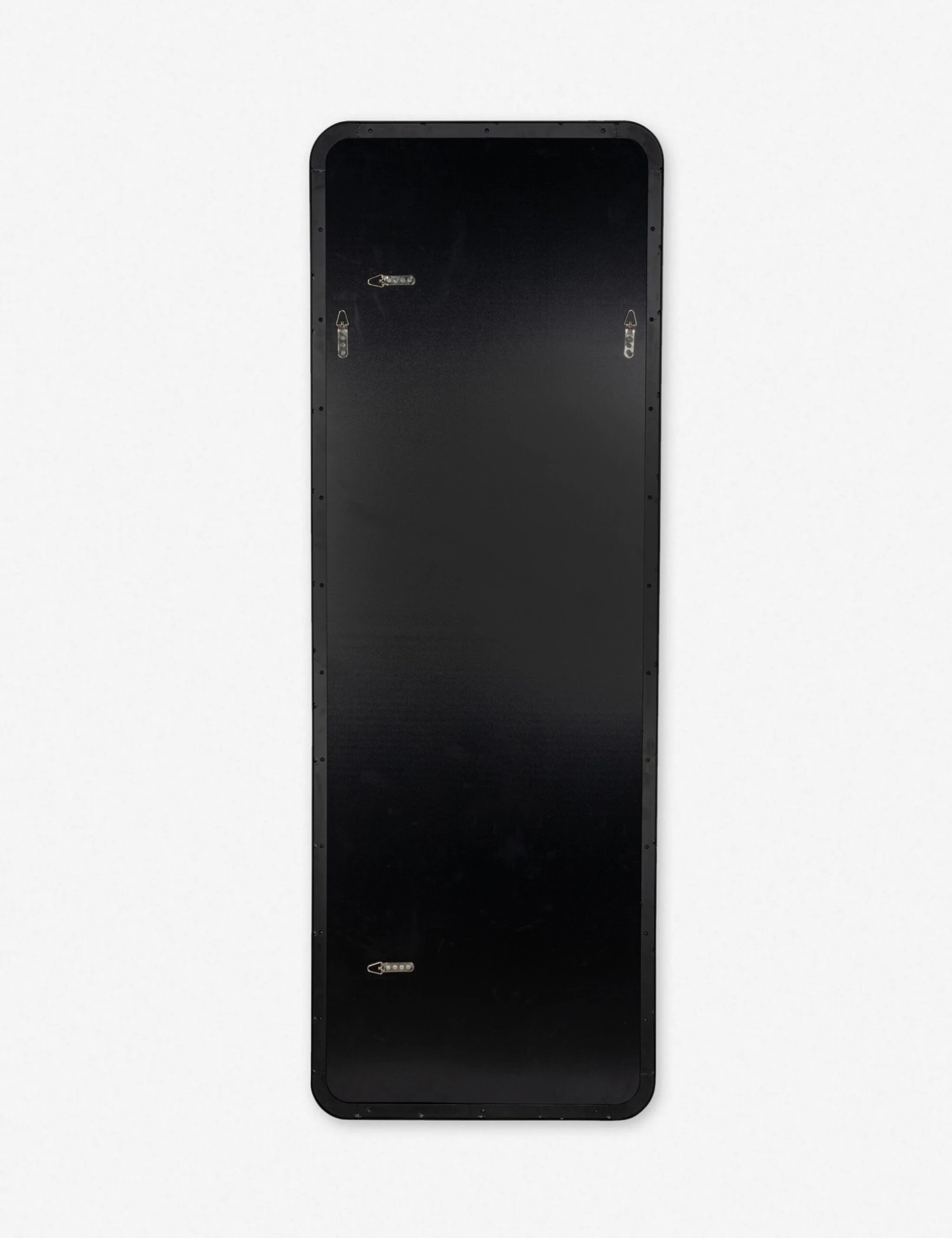 Featuring rounded corners, a minimal black metal frame, and its leaning design, this floor mirror is a fresh, modern piece for your home. Its streamlined style makes it incredibly versatile, we love it in a bedroom next to a dresser or in the entryway near a console.