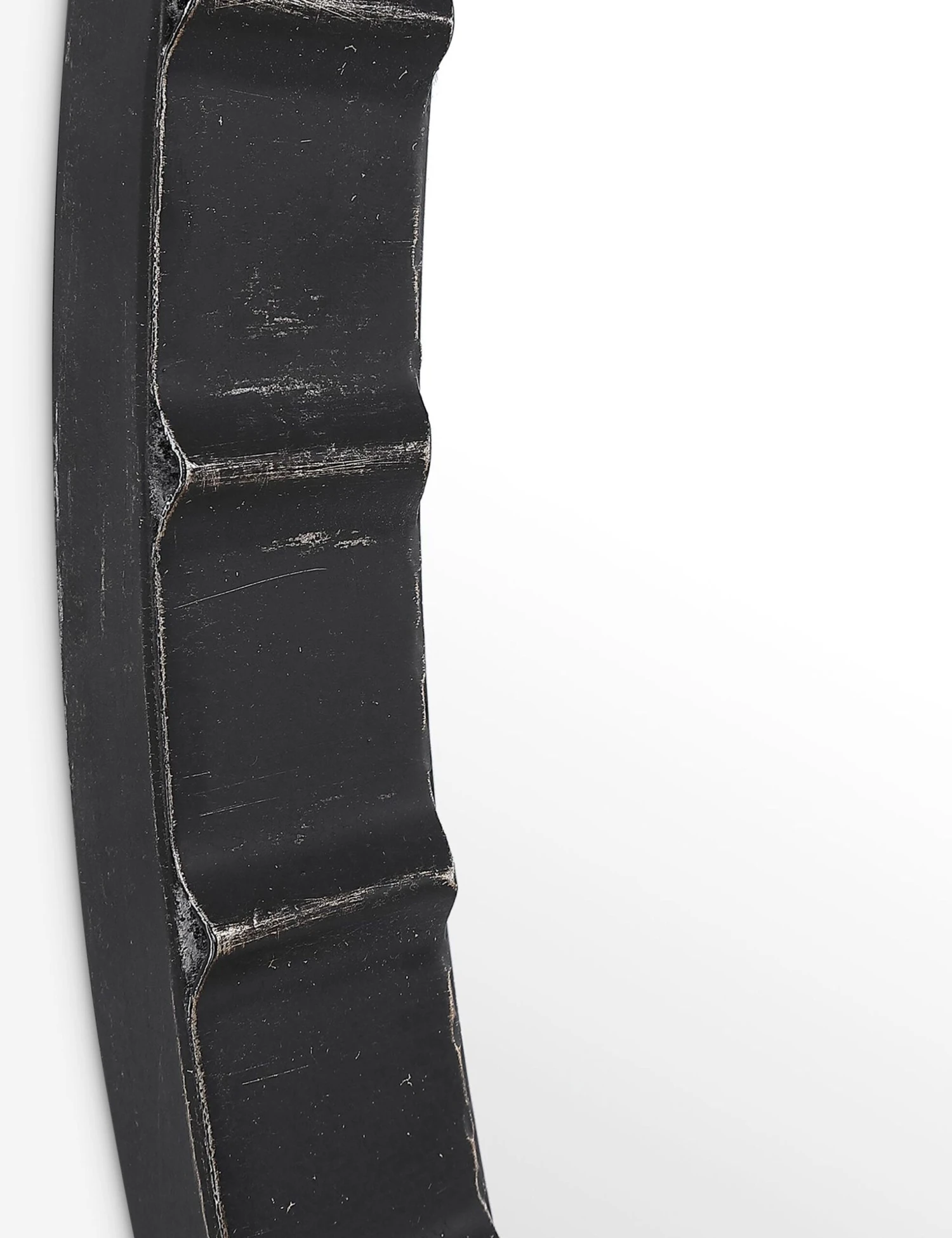 The textural ridges and a slightly distressed matte black finish of this round wall mirror layer in a bit of industrial design. Made from iron, its antiqued look adds rich character into your space. Style this decorative mirror above a sofa, sideboard, or console table.