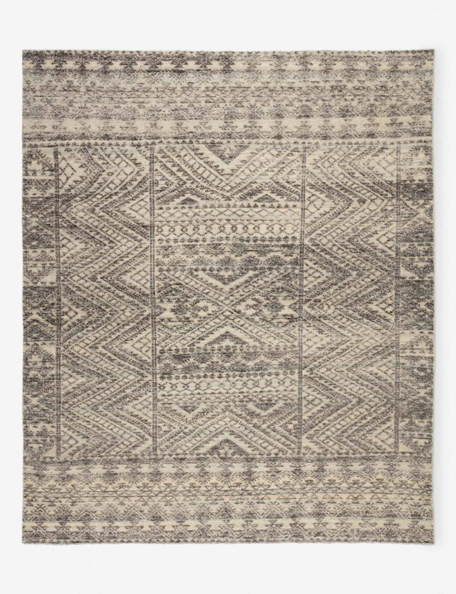 Detailed and geometric, this hand-knotted wool rug experiments with depth and pattern to create a captivating yet versatile piece. The tonal grey palette is soothing yet fresh and makes the Baharri rug work in almost any space.