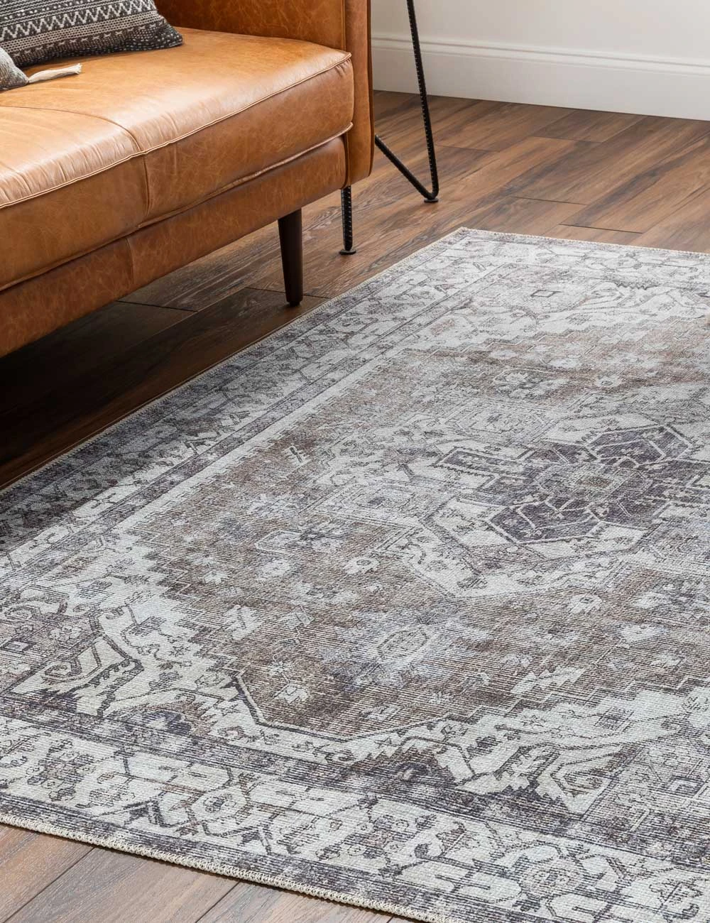 With its cooler, more earth-toned palette and vintage-inspired motif, this area rug works as a bridge between design styles, so it’s incredibly versatile. The rug’s modern construction is made for easy-care appeal in high-traffic areas and everyday spaces.