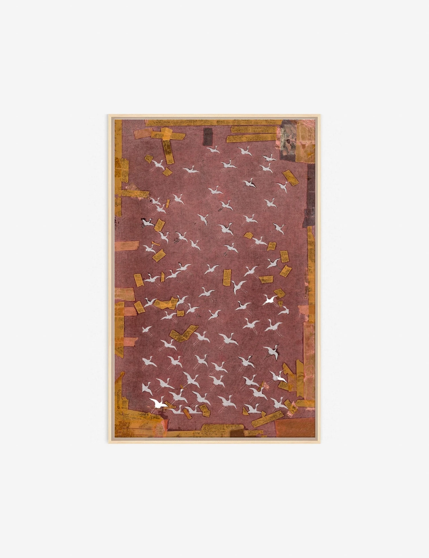 Featuring a dance of ascending cranes, this wall art piece acts as the perfect complement to any moody or small space. Pair with similar pieces to hang triptych for a beautiful installation.