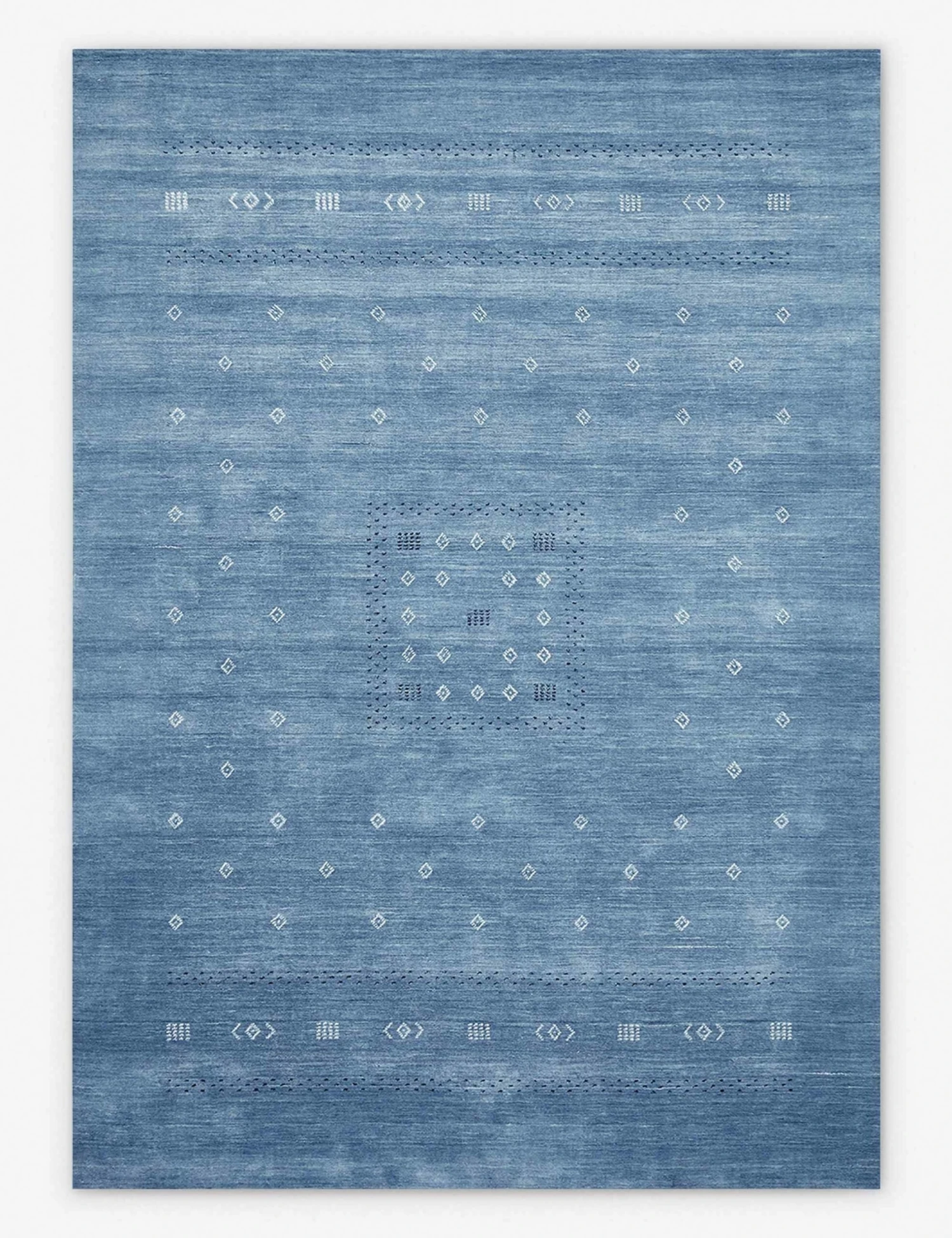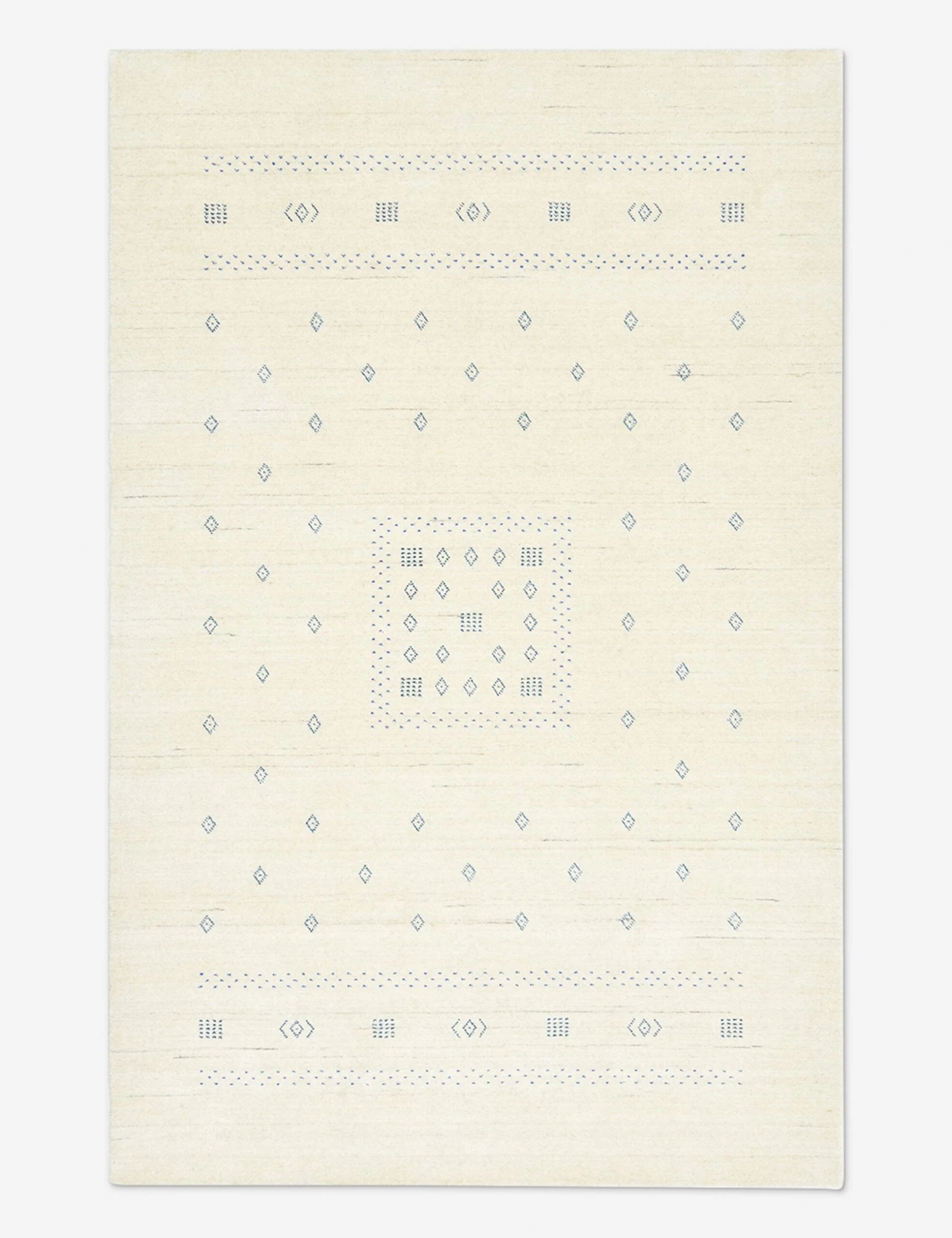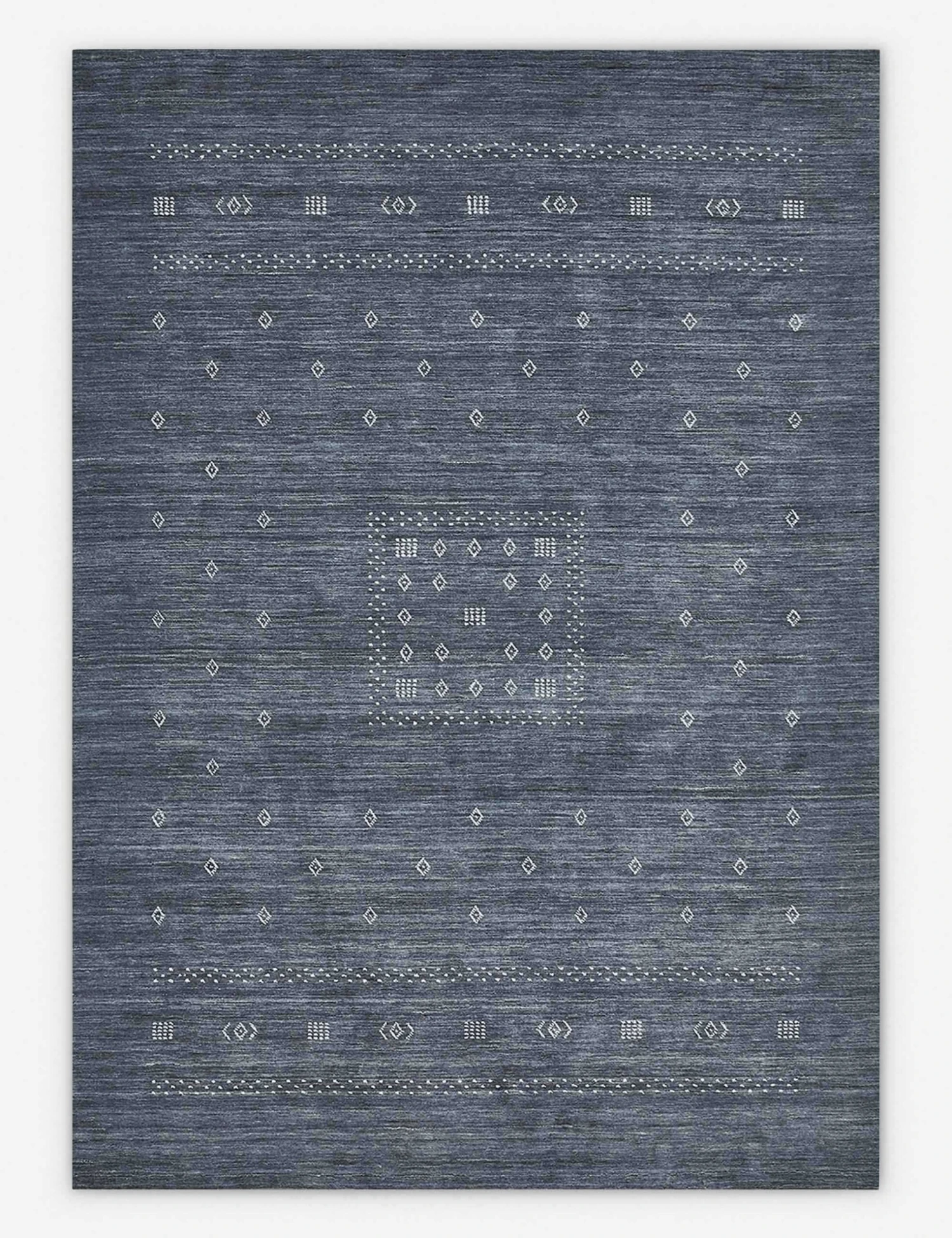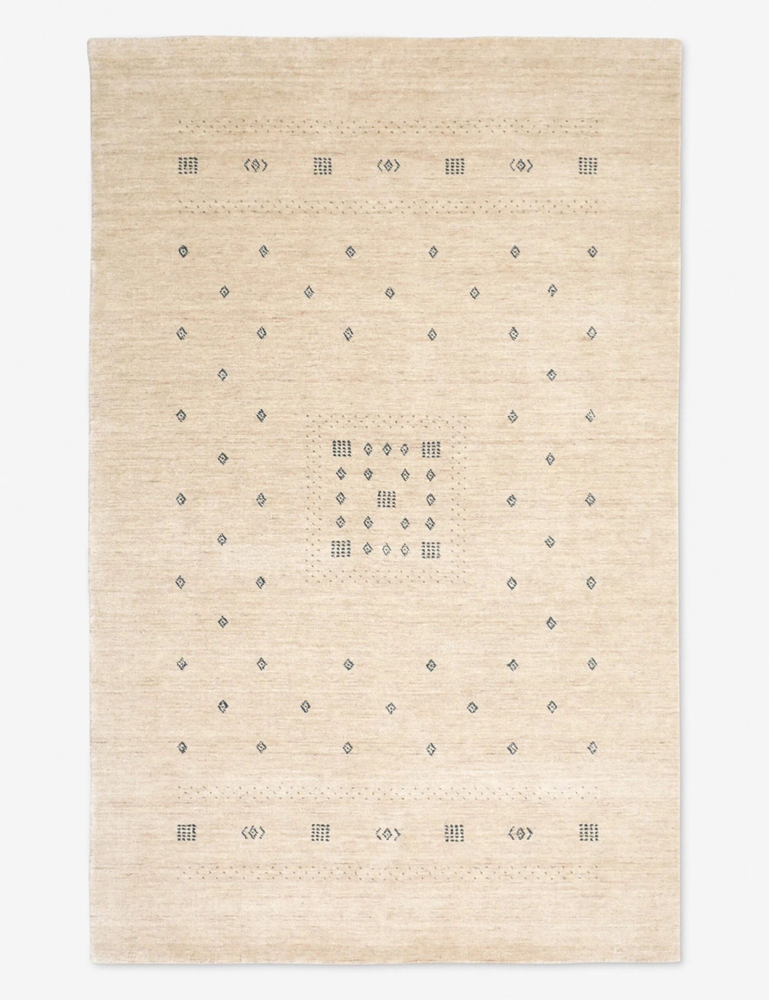 This woolen area rug has a supple, hand-loomed pile, bringing a cozy warmth to your home. Subtle color variations pair with simple geometric motifs inspired by Iranian Gabbeh rugs to bring a well-traveled look and feel to this handmade rug—ideal for a cozy family room or under your bed.
