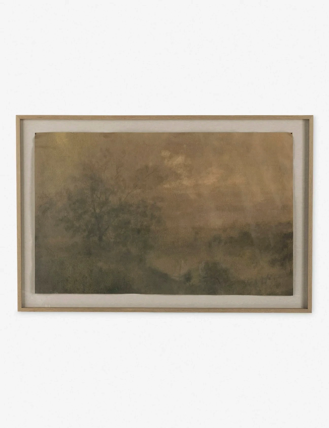 Inspired by the Texas hill country, artist Aileen Fitzgerald creates a tonal landscape in this atmospheric wall art painting. The impressionistic style captures a natural scene with an emphasis on light, offering a cool dimension to curated wall decor.