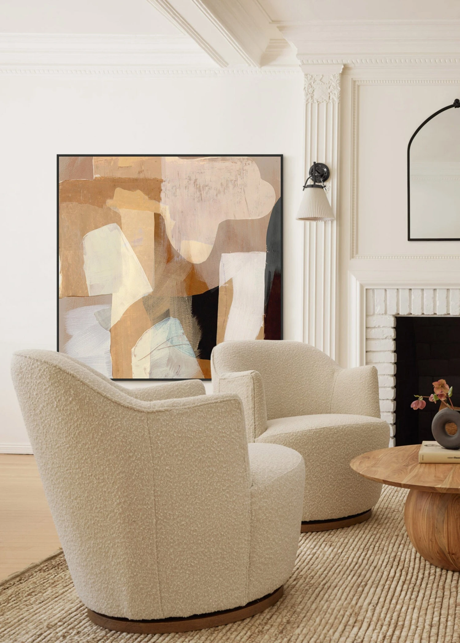 Bold neutral brings a pleasing grounding tone to this abstract wall art. The play of shape and line can tie together a space that blends natural textures with modern design. This large-scale wall print offers a gallery-quality reproduction that will stun in any setting.