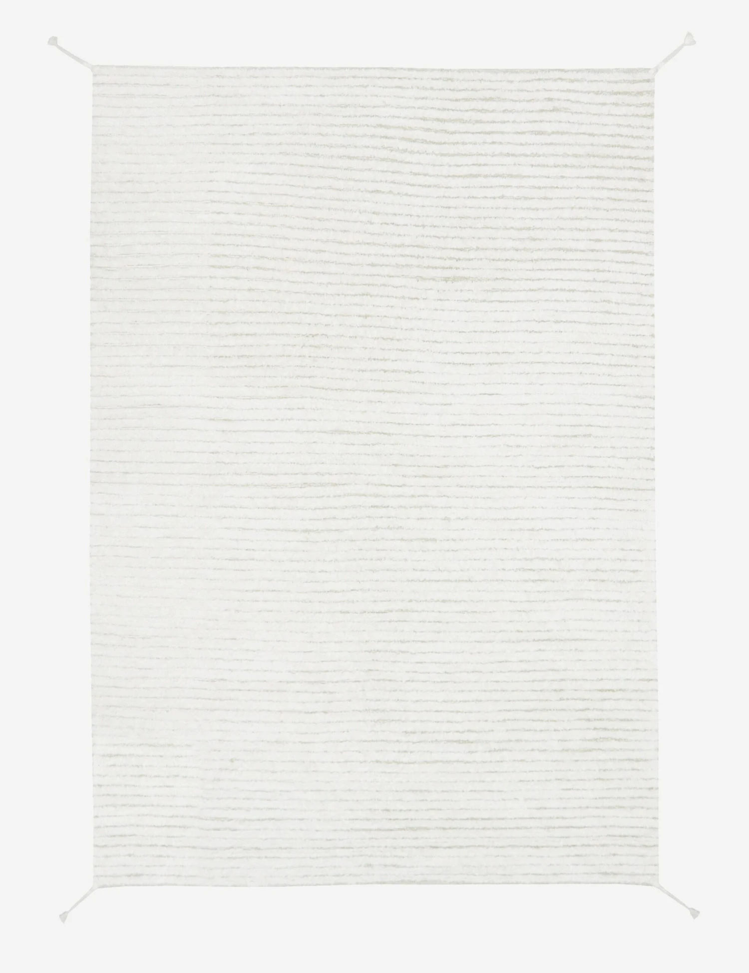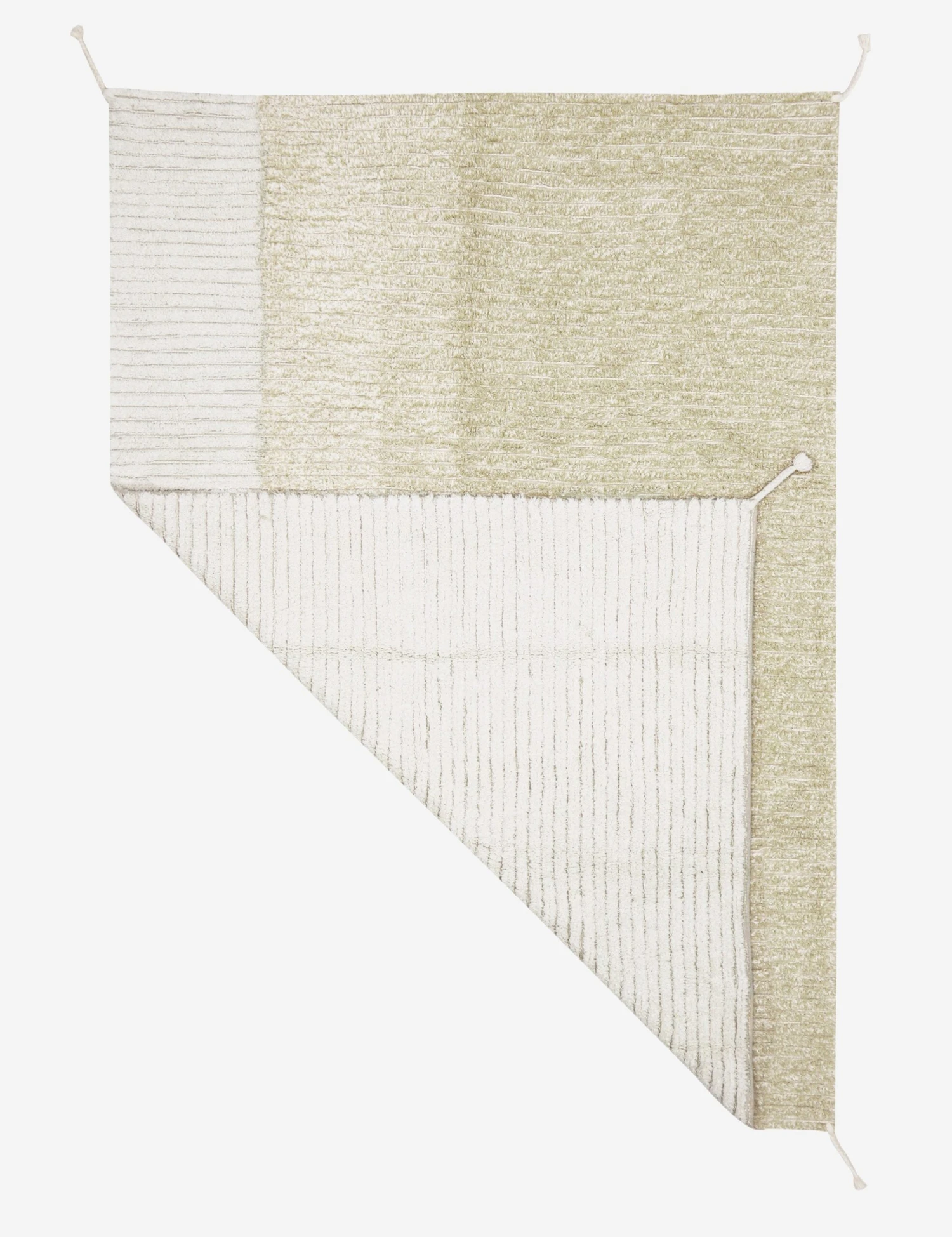 Lorena Canals brings the durability and softness of wool to a patented washable design for a luxurious, easy-care rug. The Gelato rug features a pastel ombre on one side and ivory stripes on the other, perfect for an instant room refresh—we love the handmade braids on each corner. Enjoy the plush natural touch underfoot and launder again and again for always fresh style.