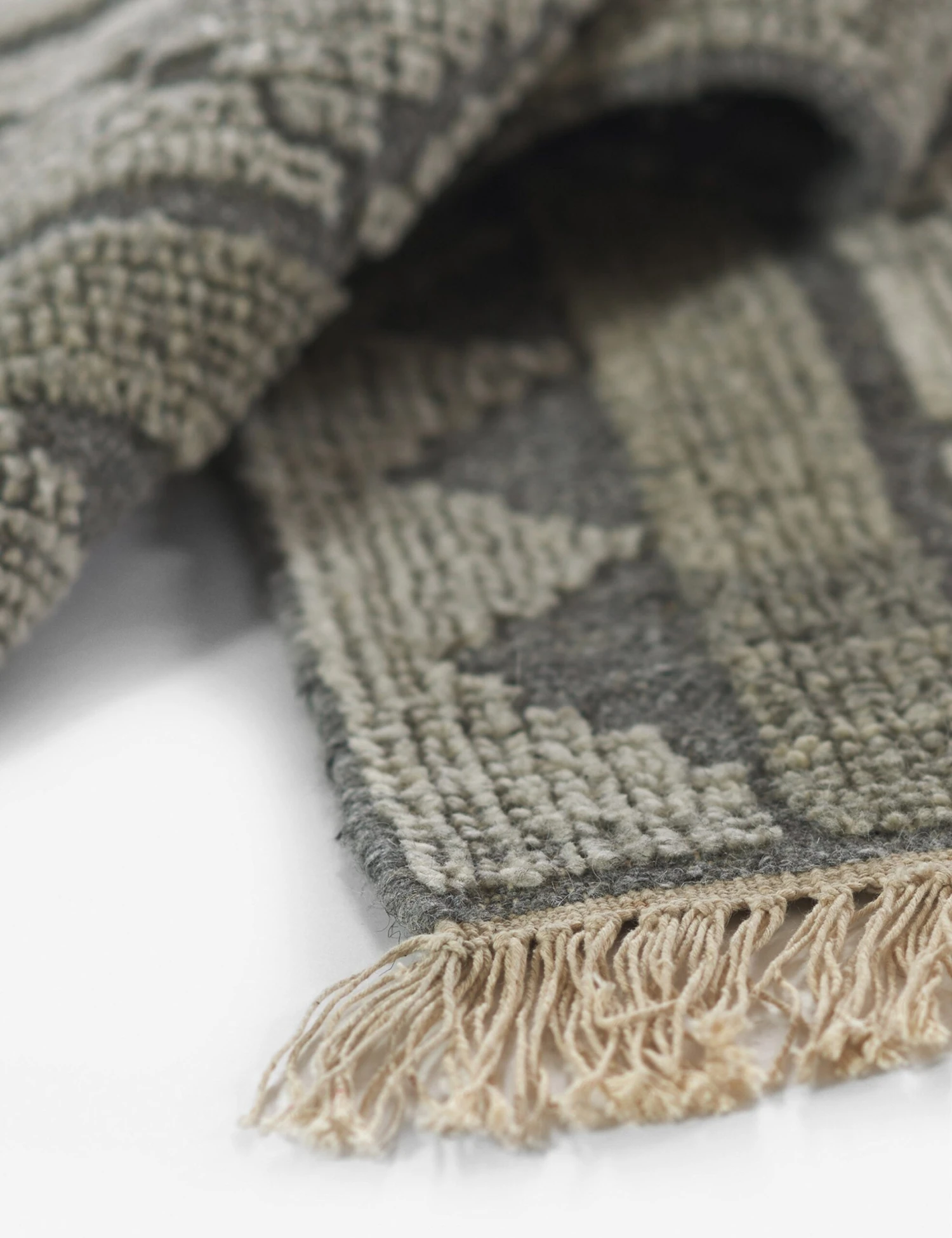 In a cool gray shade, this area rug stylishly combines a monochromatic palette and vintage-inspired design. Handcrafted from a wool-cotton blend, we love how its pattern instantly adds visual impact. Place this durable, low-pile floor rug in a high-traffic area like your living, dining, or entryway spaces.