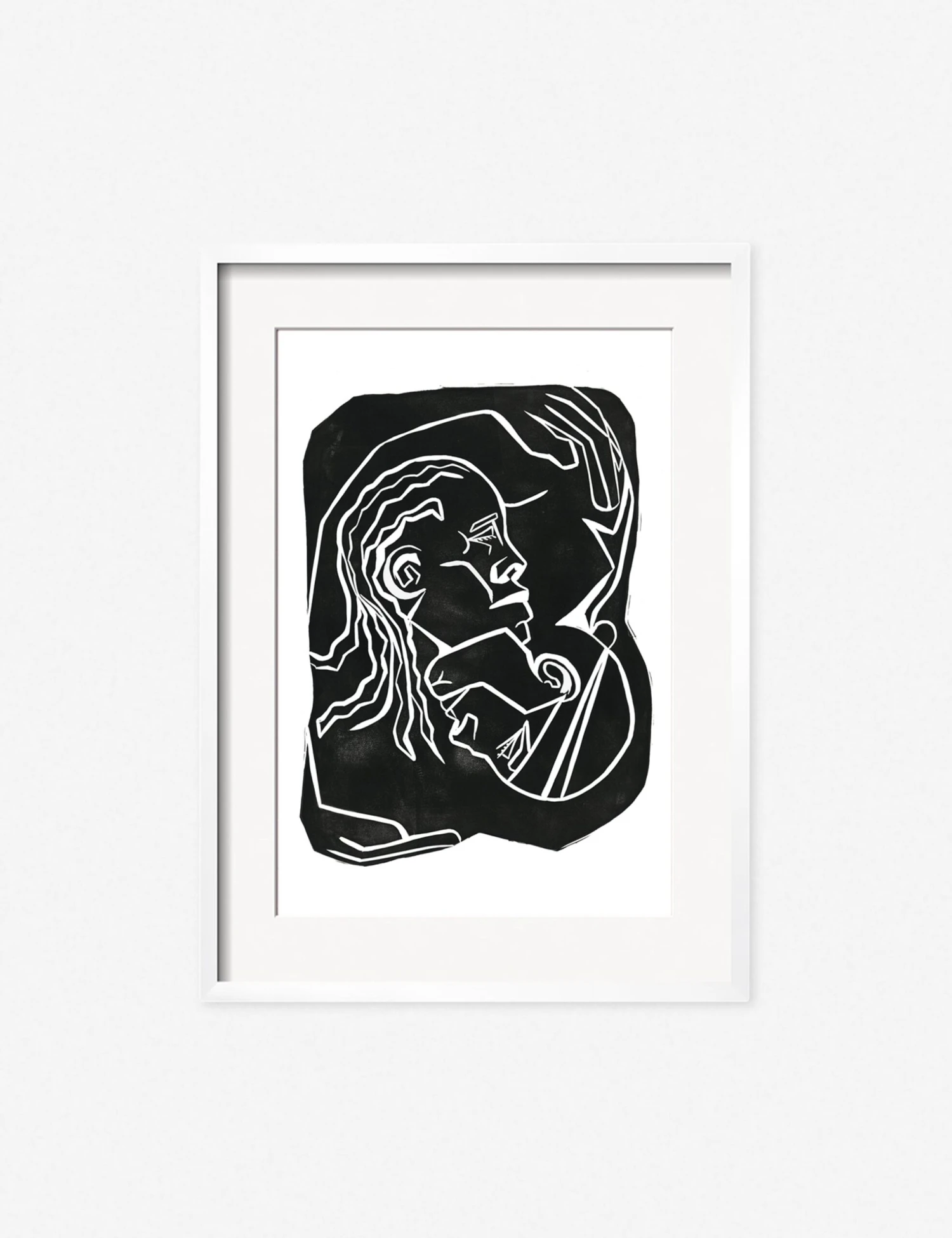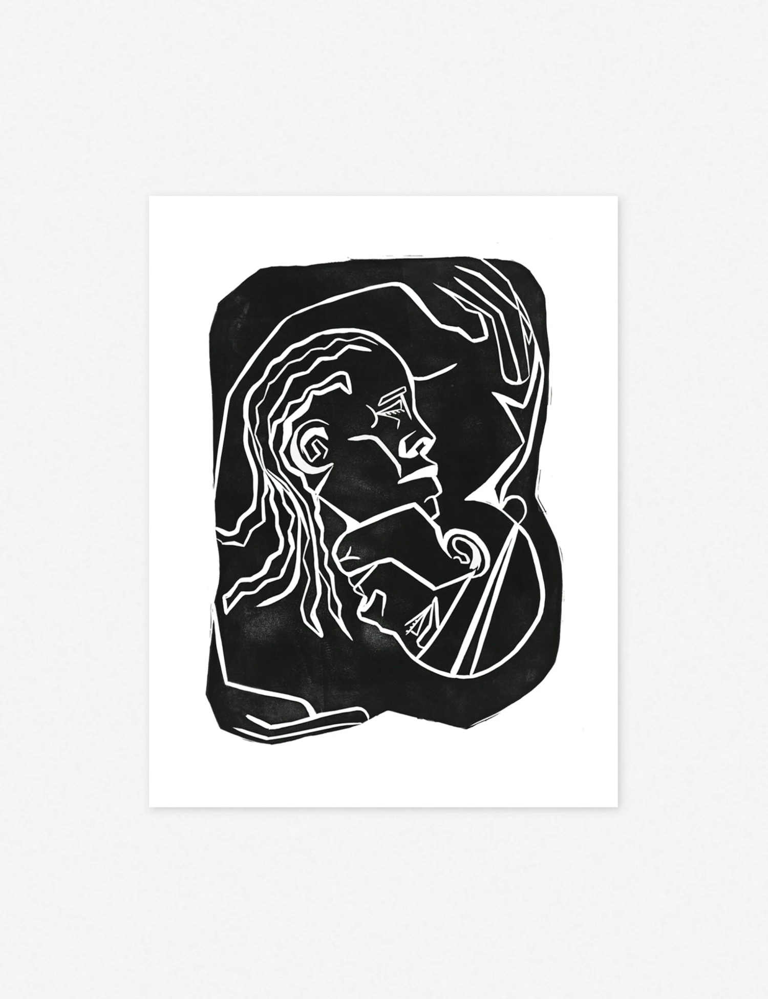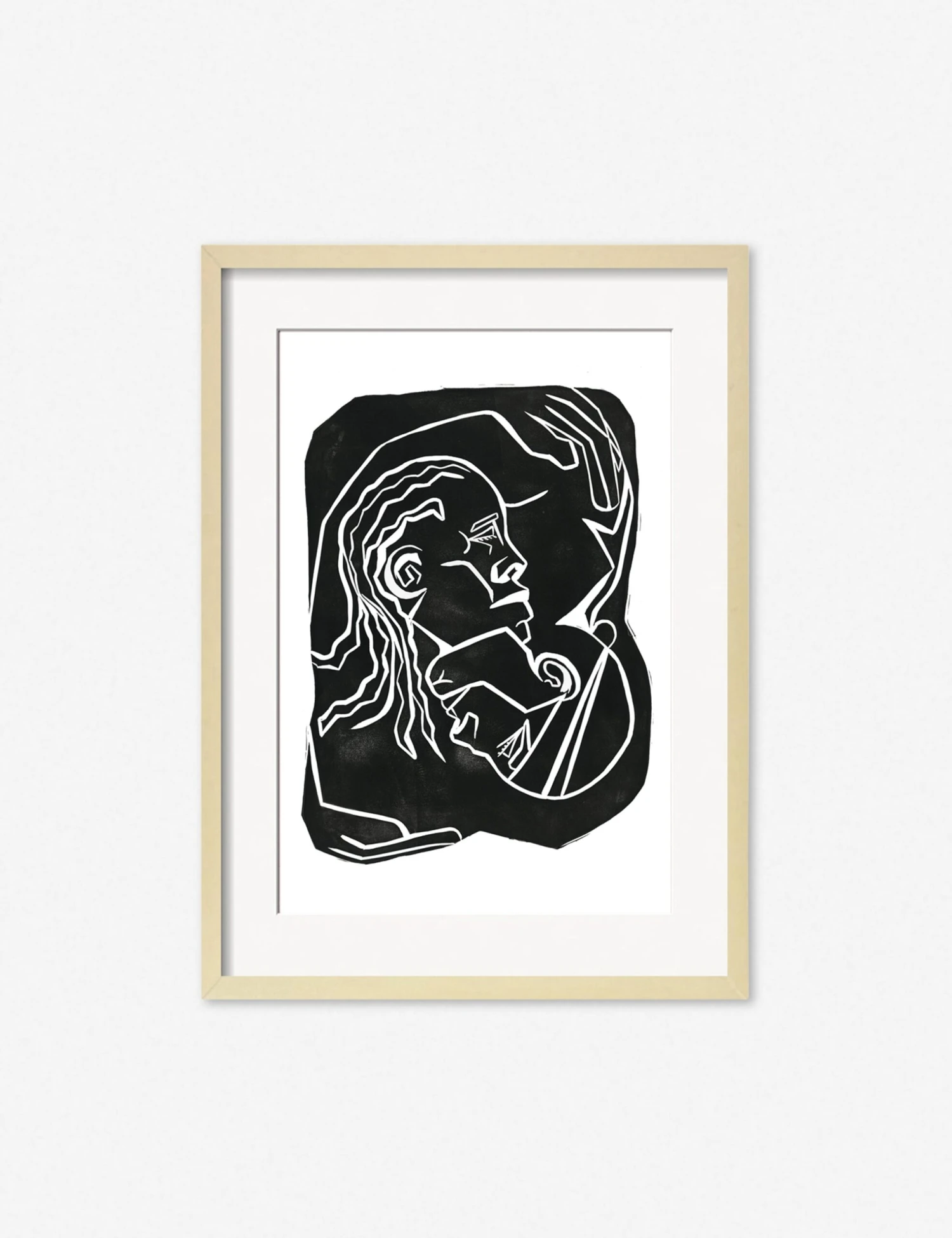 Adrian Brandon is a Brooklyn-based artist who works to share a broader understanding of the Black experience, with the hope for progress rooted in love and unity. Brandon captures expressions of closeness, family, and joy with an abstract yet vibrant fidelity in this exclusive wall artwork collection of linocut prints. This wall art print uses sparse elements in a close composition, rendering an intimate embrace with profound visual impact