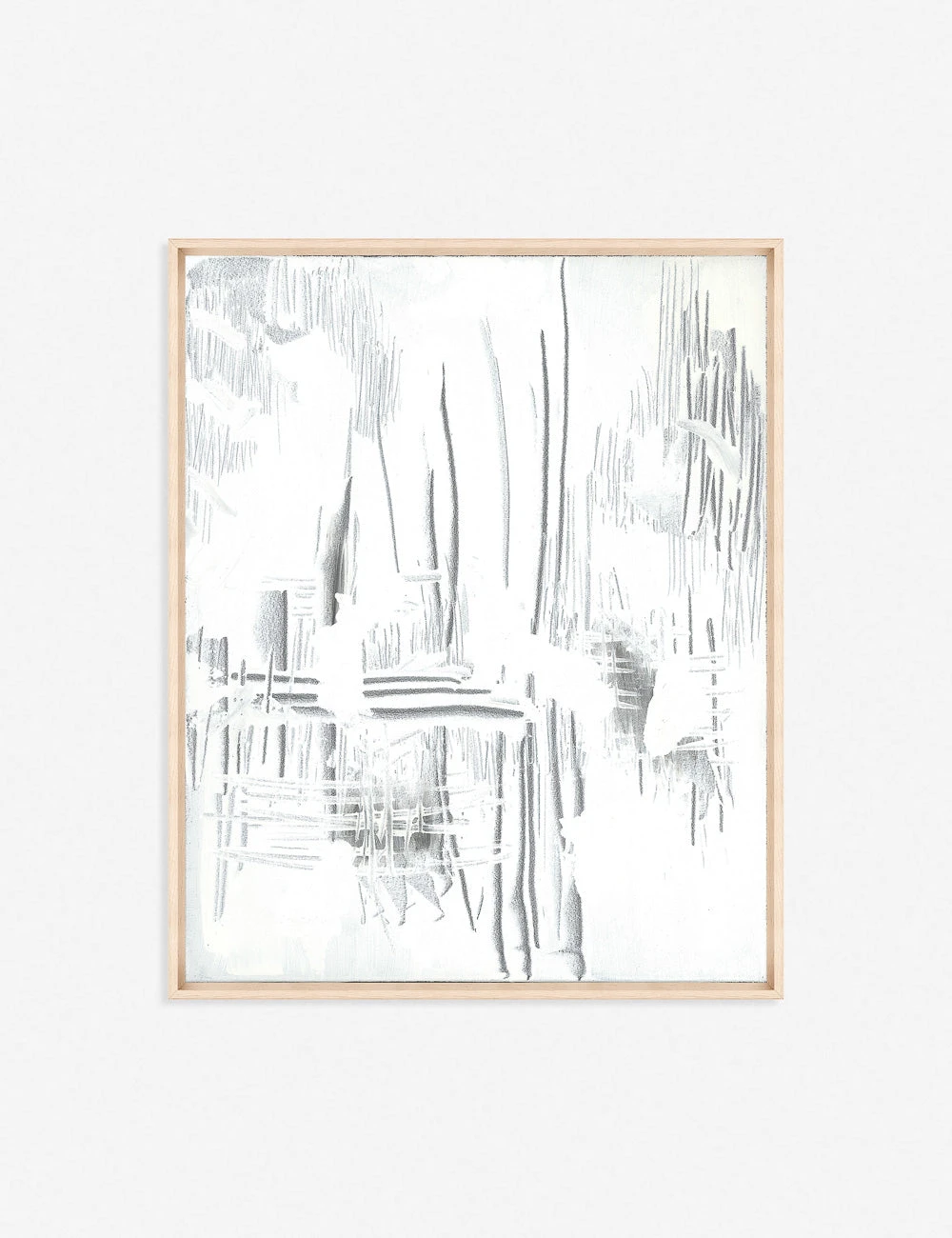 Dynamic brushstrokes bring a sense of immediacy to a stark palette in this original wall art painting by Danielle Davis. The crisp field of white courses with texture and a perpendicular balance to offer a refined tone in a curated wall art collection.