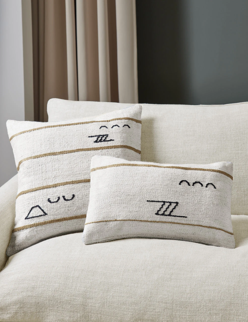 Inspired by vintage motifs the Iconic Stripe Pillow features thin stripes and small, modern symbols for a look that feels both familiar and fresh. It blends beautifully with other neutral and earthy tones like clay and sand. The Sarah Sherman Samuel Collection features tonal textures, earthy hues and a modern take on traditional patterns.