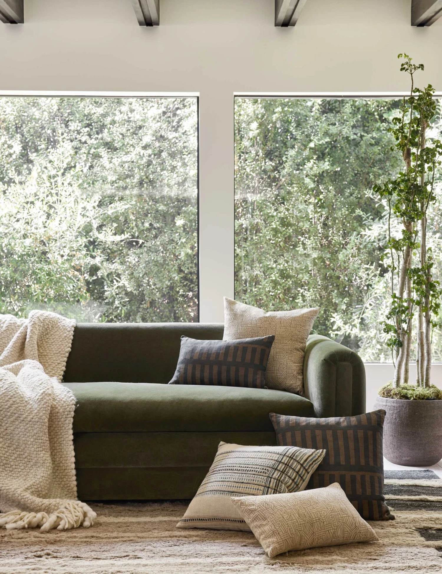 A soft linen weave lends dimension and a natural texture to the abstract design in this throw pillow. Featuring a black geometric pattern on a bronze field, this decorative pillow is the perfect accent for a space that feels richly collected and cozy.