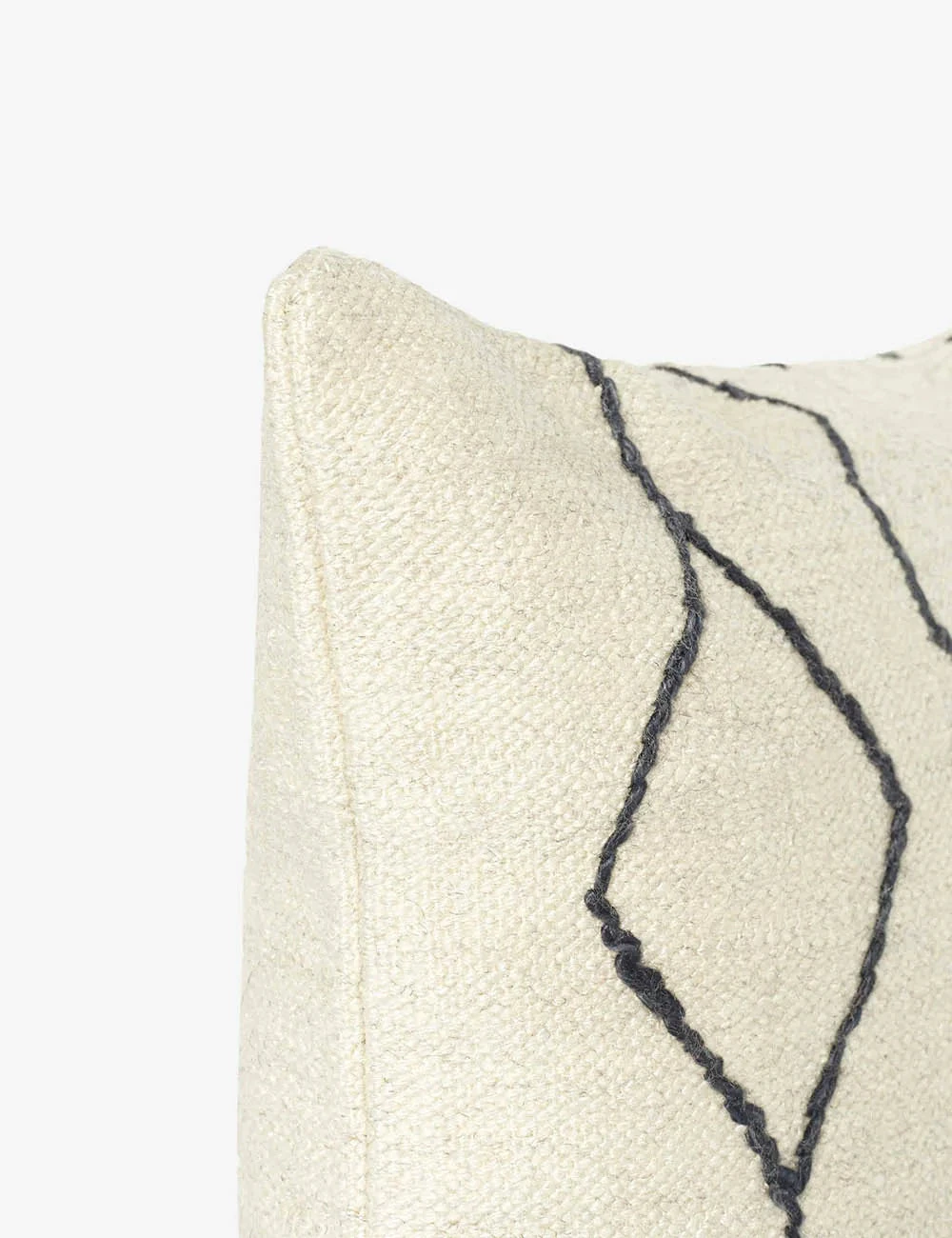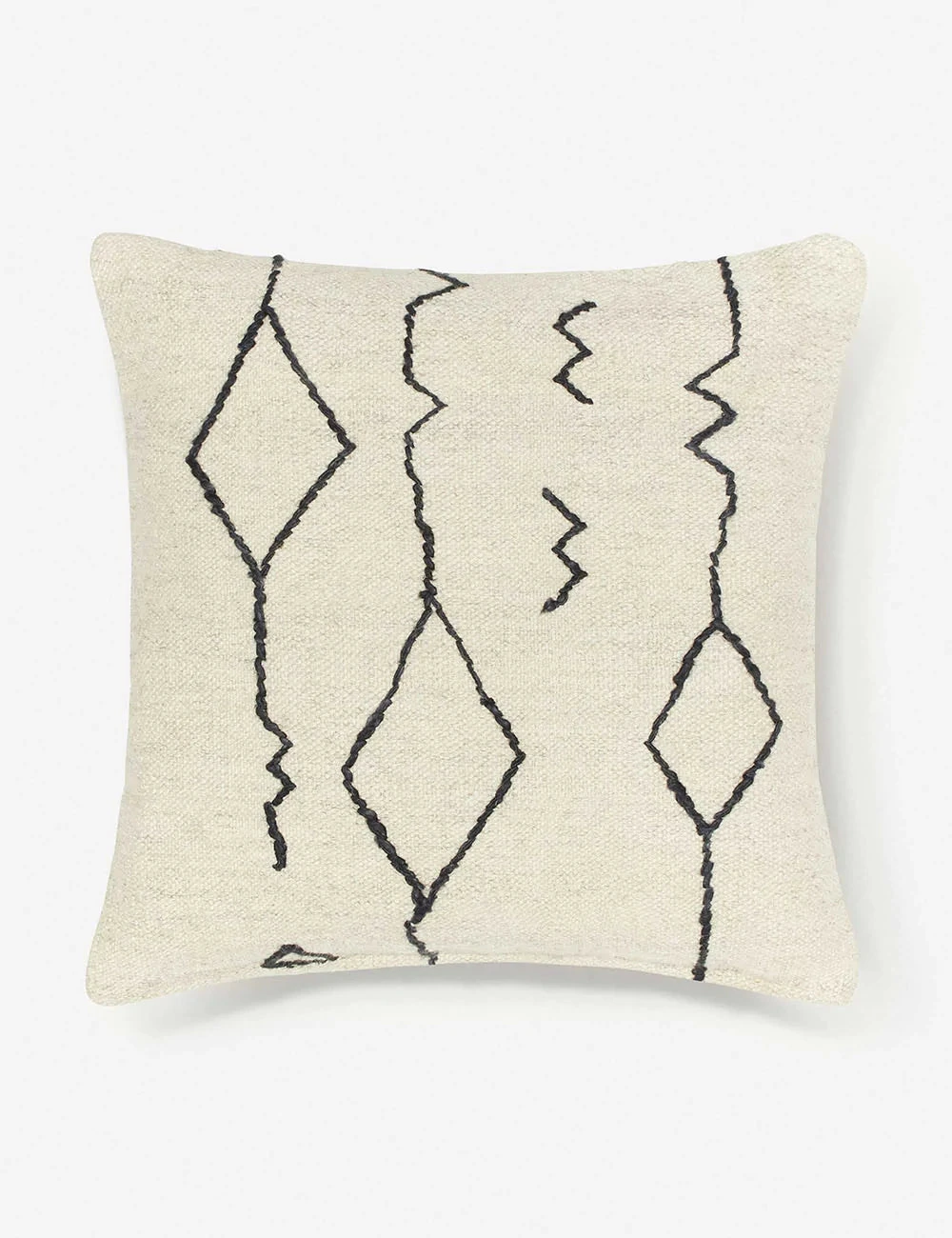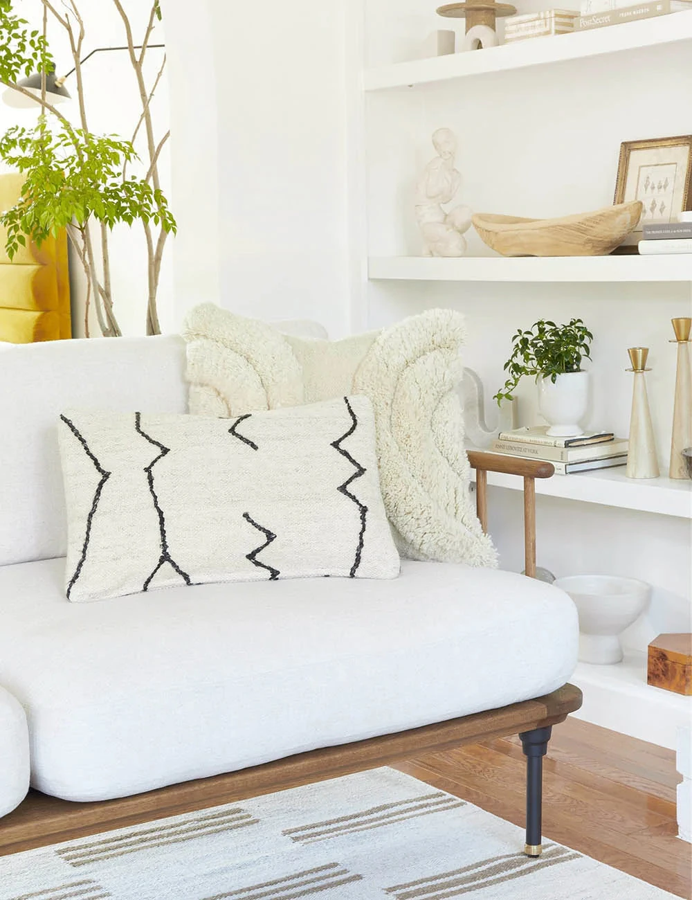 Inspired by traditional Beni Ourain designs, the neutral, black and white-hued Moroccan Flatweave Pillow features a simple, sketched pattern. Add it to a sofa with other earthy or subdued tones for light and airy style. The Sarah Sherman Samuel Collection features tonal textures and a modern take on traditional patterns.