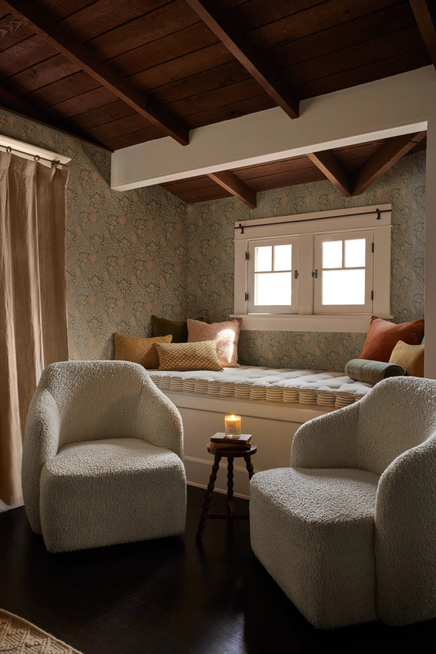 Scrolling acanthus leaves and freckled apples are the prominent focal points of this refreshing wall art. Designed in the late 19th century by Arts & Crafts textile designer William Morris, this wallpaper was used to decorate his daughter’s workroom in her Hammersmith home located in London, England. The “Acanthus” motif holds particular value as it was the first pattern released by Morris & Co. in 1884. It holds the title for the designers most recognizable pattern due to its intricate layering of entangled foliage and its three dimensional character.