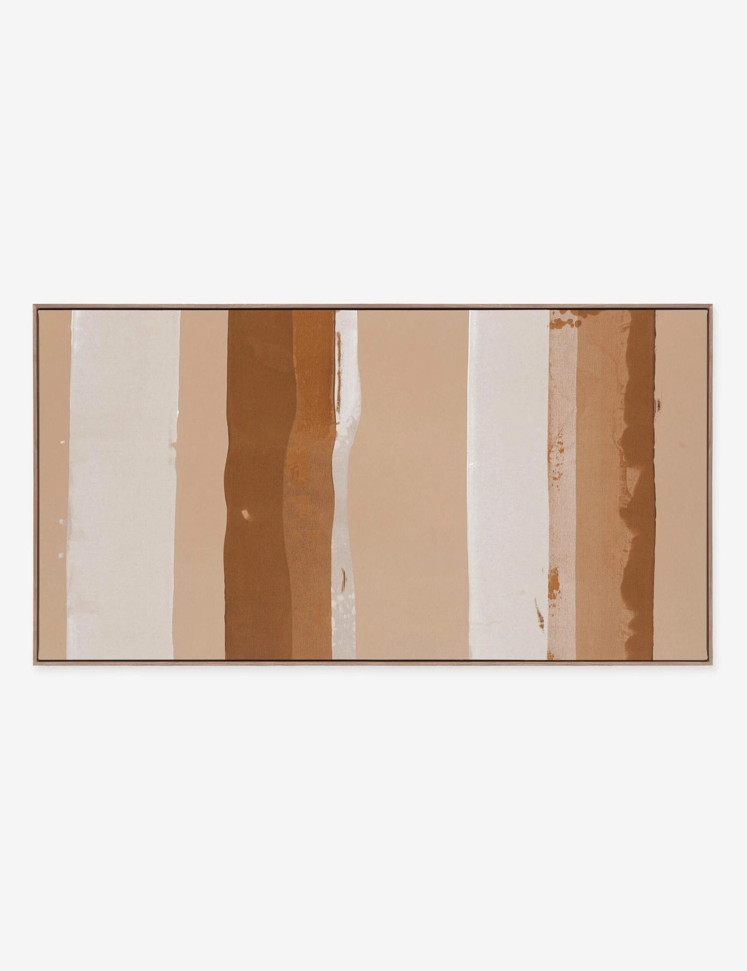 Visual Contrast is a Los Angeles-based fine art studio that produces limited-edition runs of high-quality wall art. A member of their artist collective crafts each by hand, creating unique and timeless works. This original wall art series offers one-of-a-kind silkscreens featuring organic stripes on a raw canvas for textural impact with a modern edge.