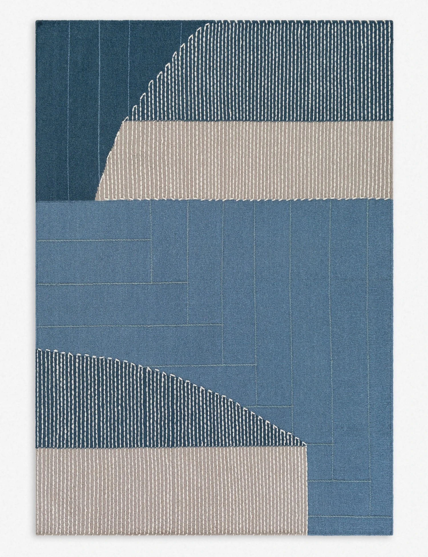 Handwoven from a wool and cotton mix, this Palomares Rug is a durable, modern area rug for your high-traffic spaces. In a rich denim and warm neutral palette, this flatweave area rug pairs well with light-colored upholstery.