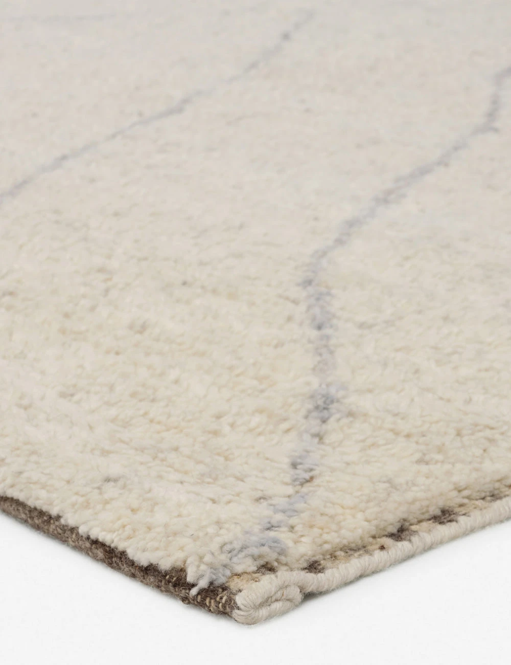 Rich in detail and plush underfoot, this neutral-toned area rug is inspired by Moroccan shags. It features a slight sheen and luxe hand-knotted construction of wool and viscose, and a trellis pattern gives this rug an organic feel.