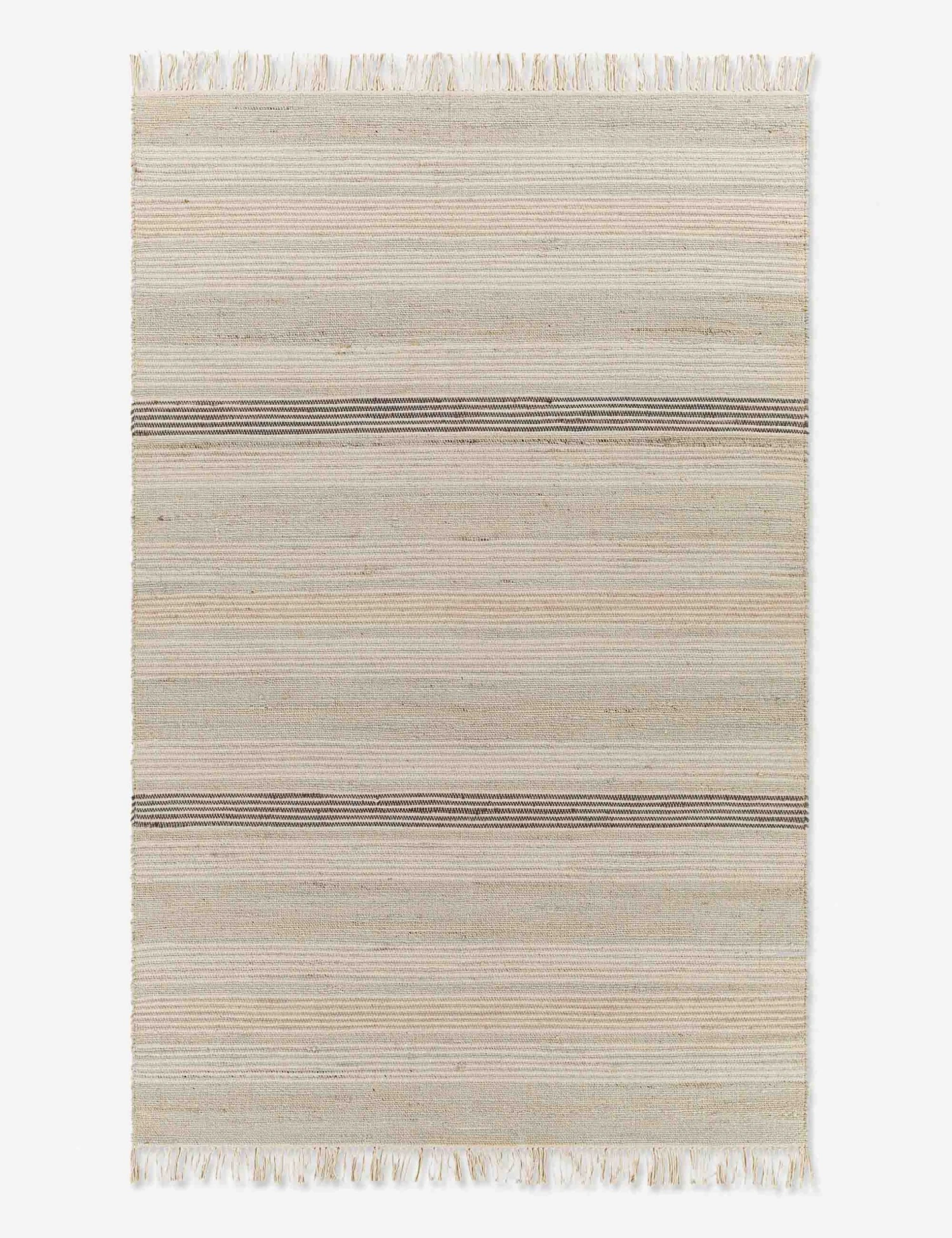 An understated, striped pattern and fringe accent provide fresh style notes in this modern area rug. The soft palette and handwoven, natural fiber construction offer this no-pile rug a refined finish that seamlessly blends into any decor for an elevating touch.
