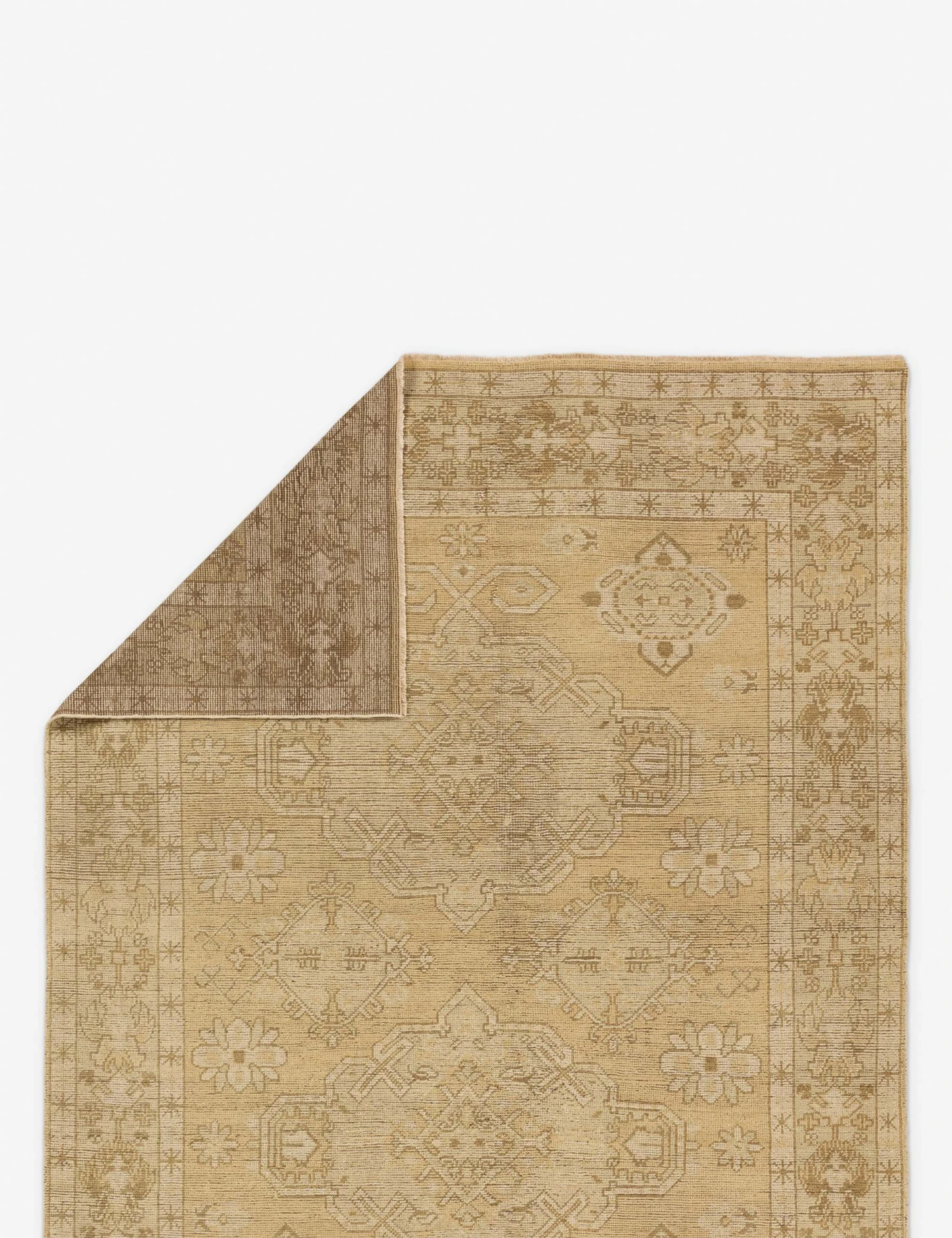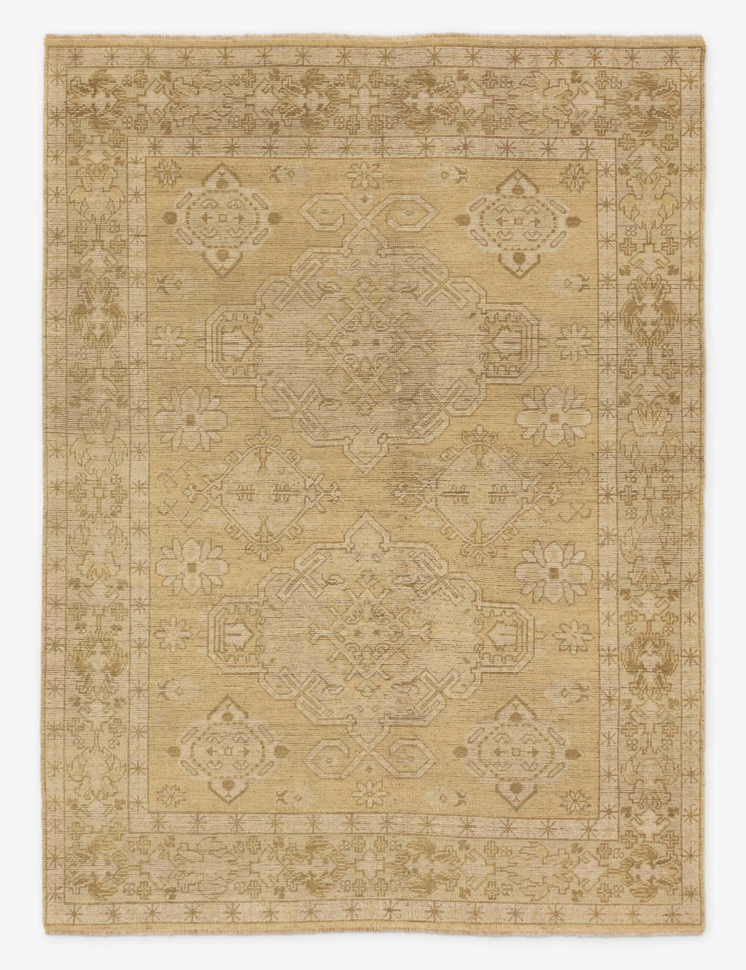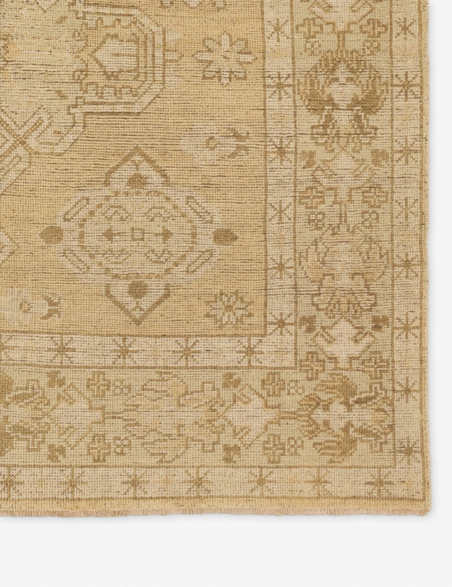 A medallion design with ornate detailing evokes a timeless tone in the Sadra rug. The hand-knotted wool offers natural fiber comfort and durability underfoot with a low pile perfect for high-traffic spaces. We love the detail of the subtle color variations in the yarn, bringing a vintage feel to this heirloom-quality area rug.