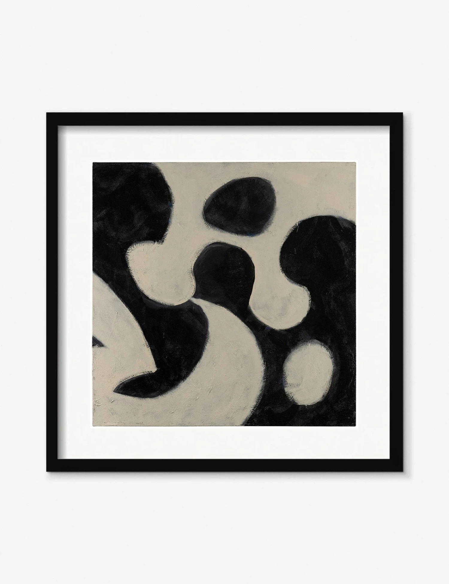 In a stylish but subdued palette, this Shapes 2 print is an abstract, two-toned wall art piece that attracts the eye. Originally painted by Irish-born and Los Angeles-based artist, Francis Poirot, this wall artwork’s black-and-natural tones would add stylish, yet neutral charm above your sofa or desk.