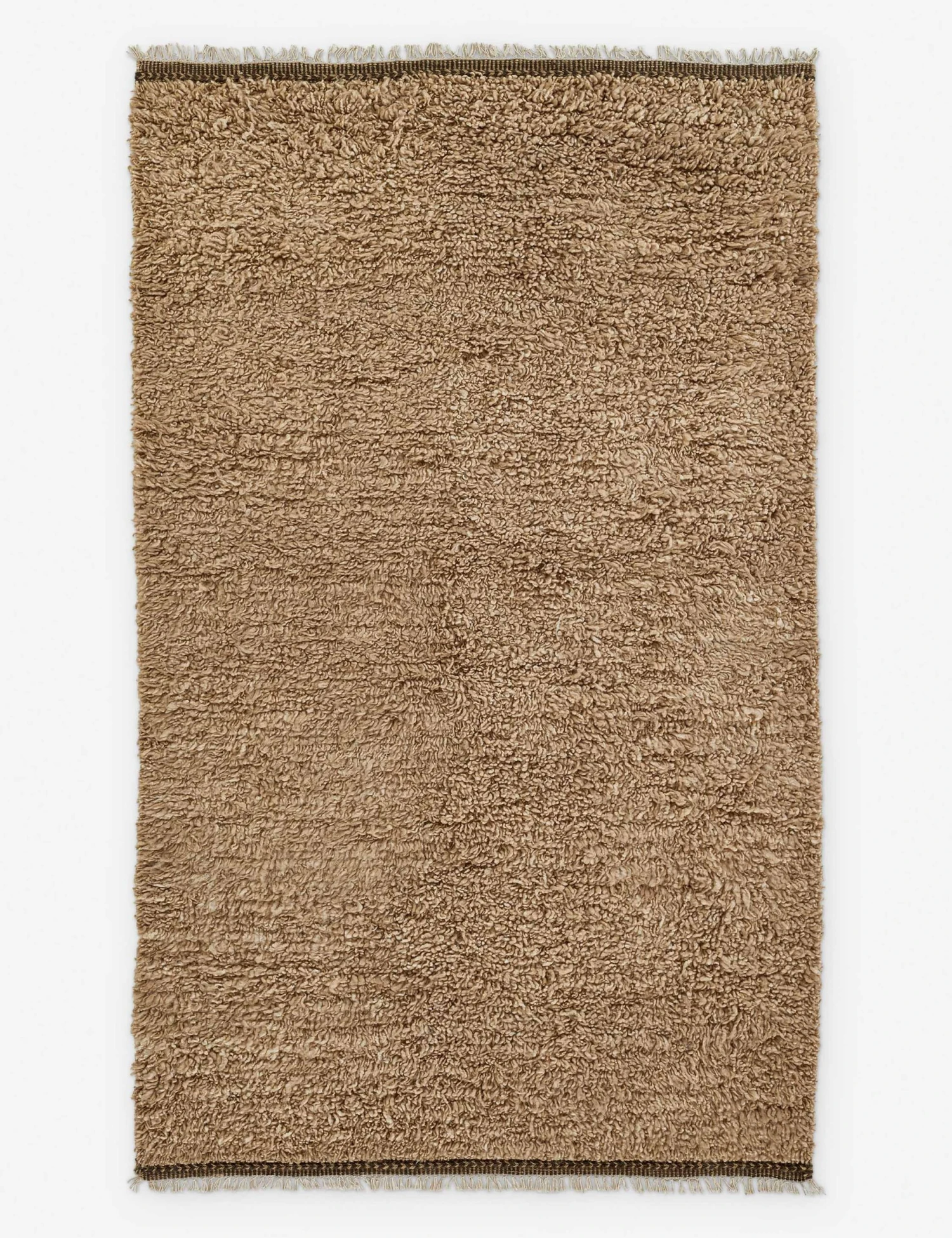 A solid neutral color and natural wool fibers make this rug the perfect grounding element for your decor. The handwoven construction provides a soft yet durable texture underfoot, ready to style throughout your home. With its plush pile and subtle fringe, this versatile floor rug lays an inviting foundation for everyday elegance.