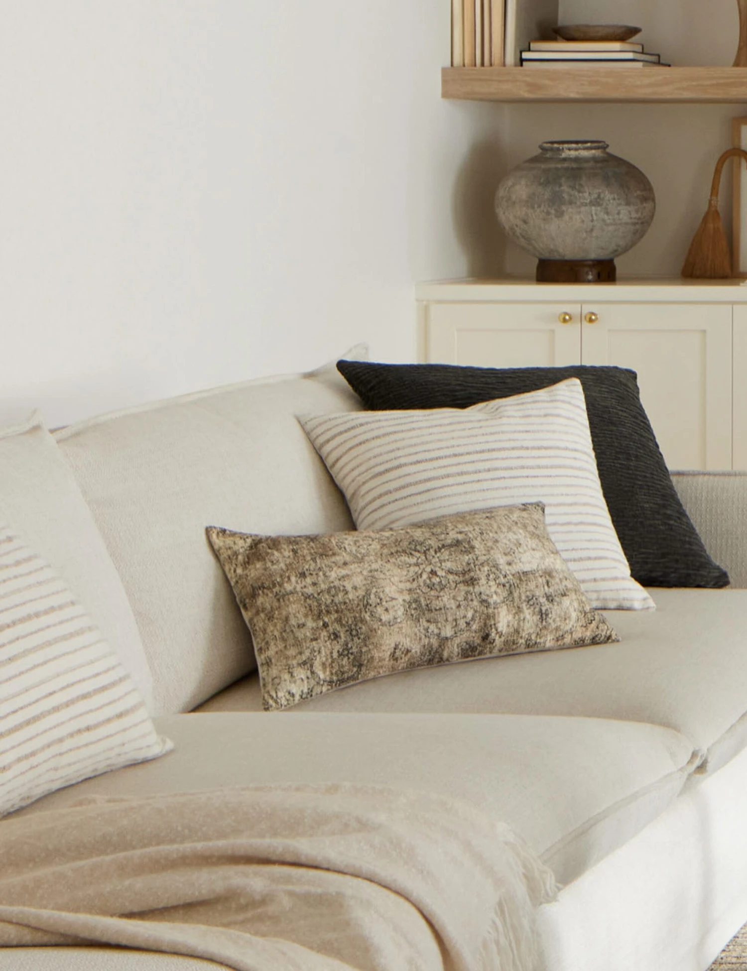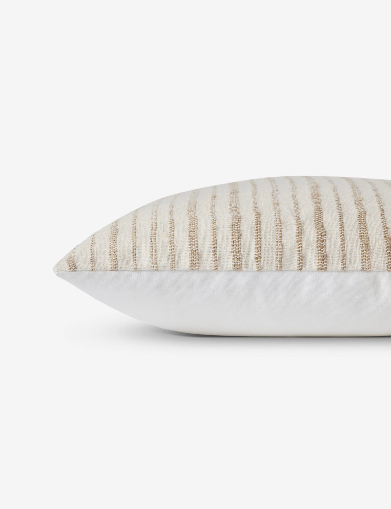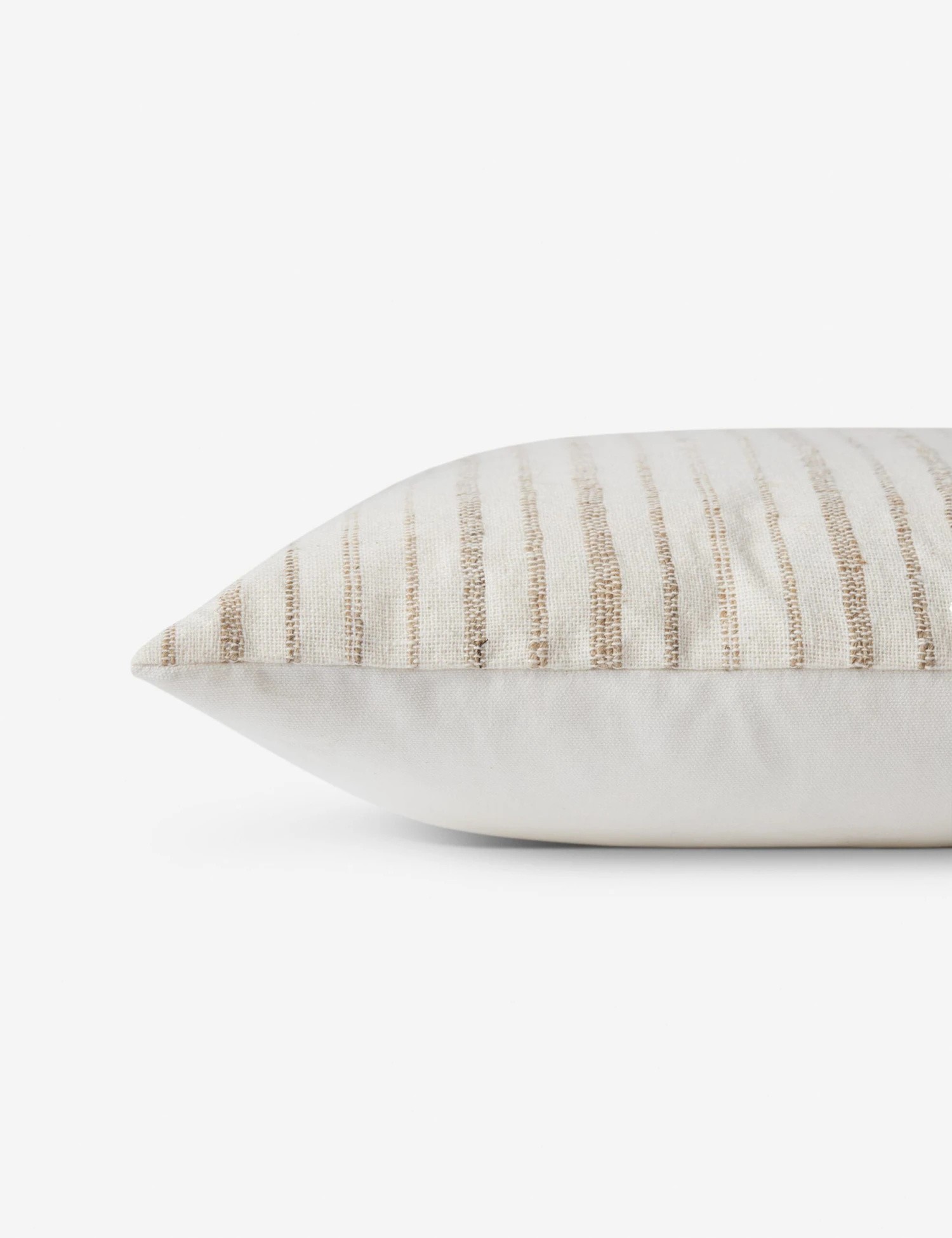 Add a chic touch to your favorite seat with this striped accent pillow. The natural on ivory pattern fashions a versatile look that balances grounded warmth with a stylish edge. We love this throw pillow for a home office reading nook or laid-back lounge.