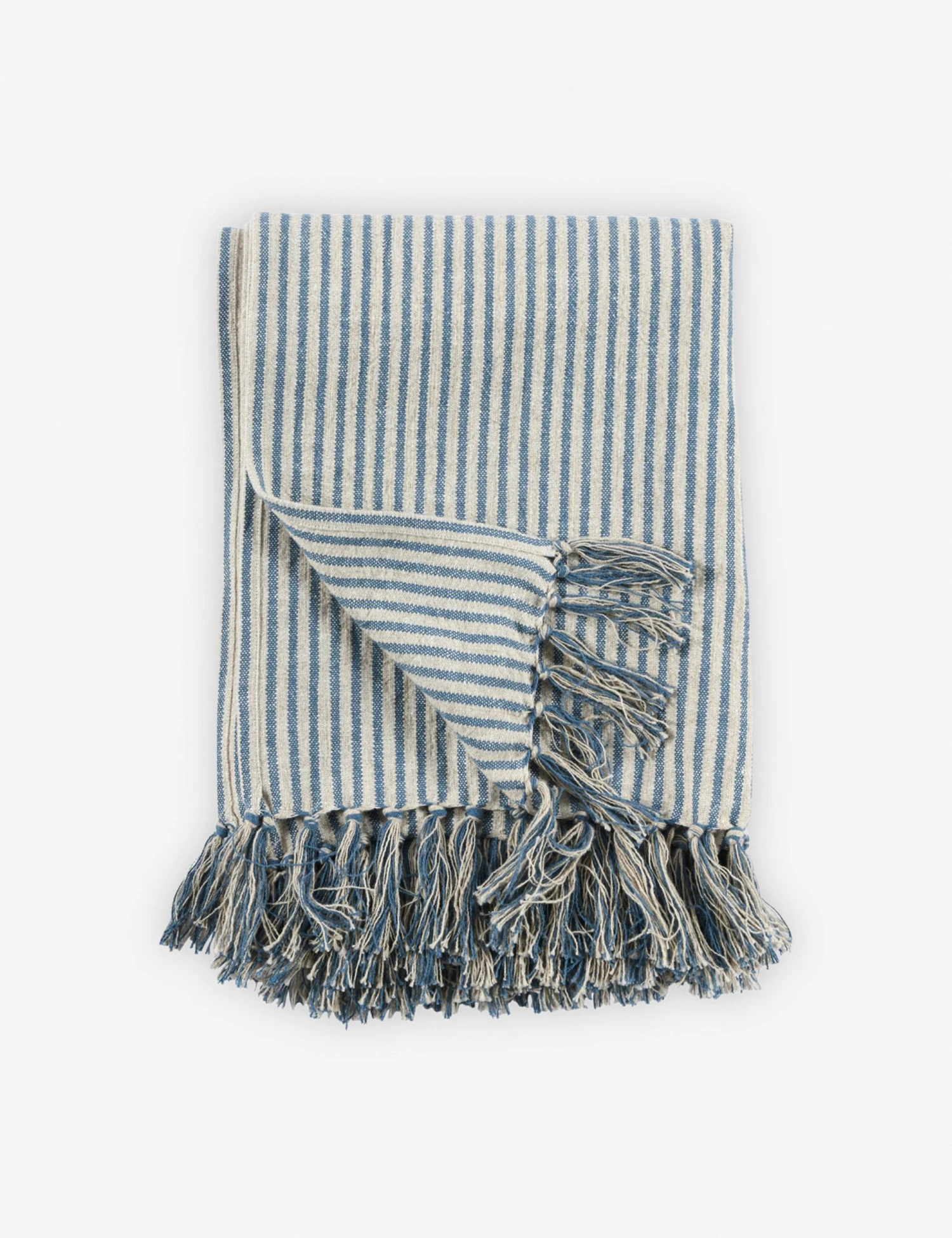 A classic blue-and-white striped design and fringed ends on this throw lend it a coastal, laid-back feel. The striped pattern strikingly stands out, but it is the cotton-linen blend construction which will immediately make this throws one of your favorite living room linens.