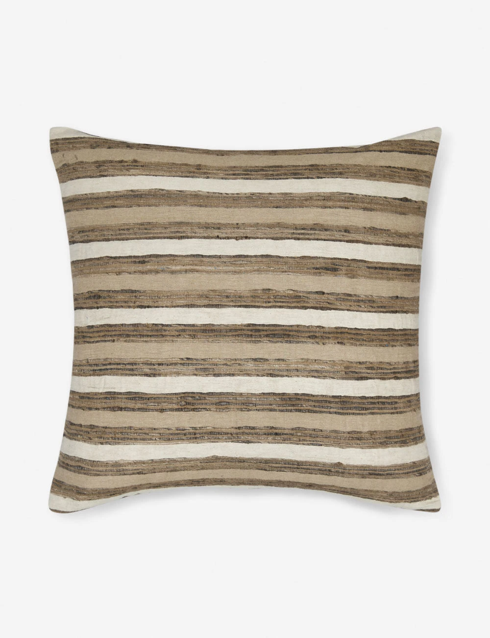Refresh your sofa or bed with a plushly stuffed throw pillow wrapped in raw silk for utterly soft appeal. The striped design blends lustrous tones with earthy hues to create a balanced accent pillow that offers a luxurious and versatile touch.