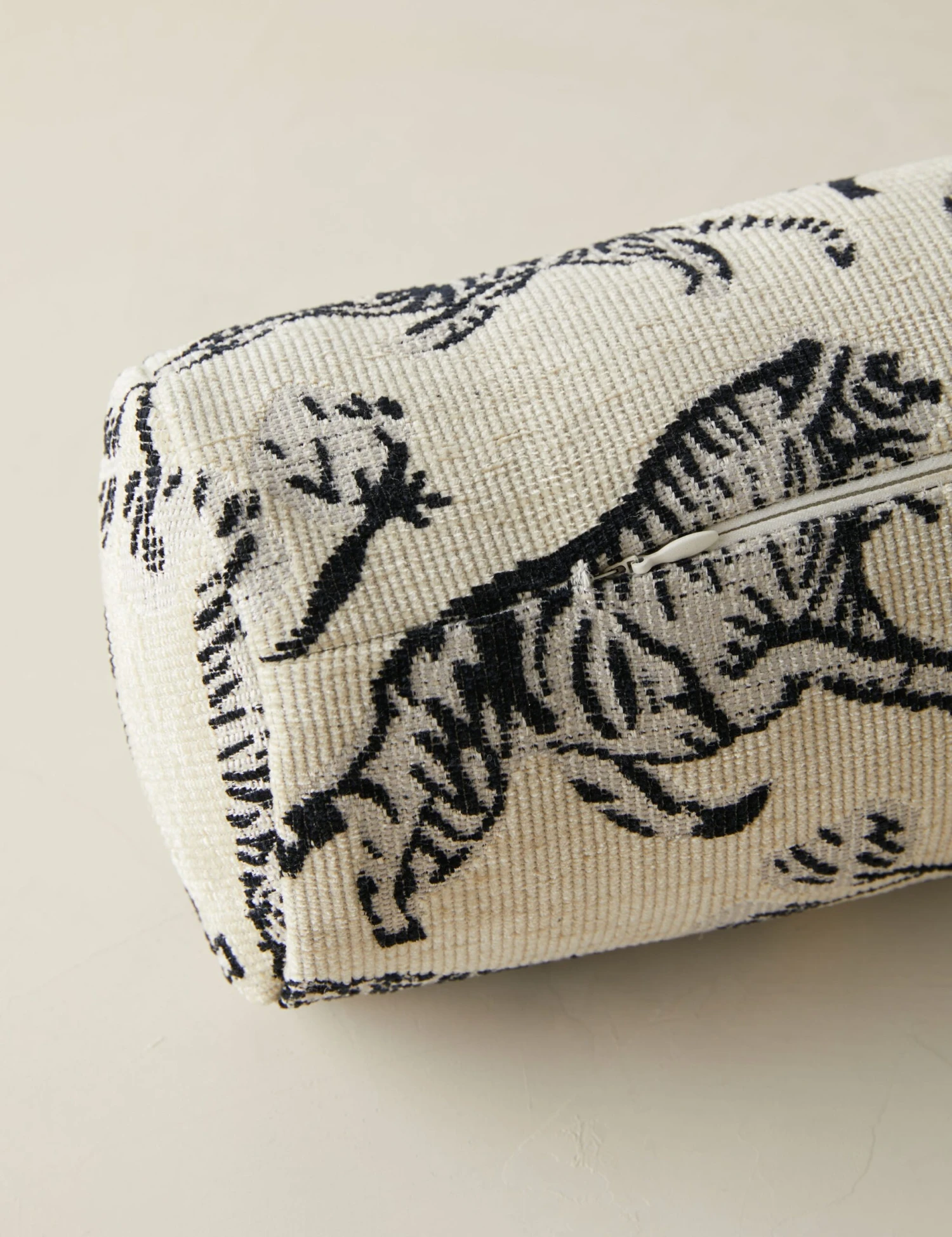 Vintage inspiration gets a fresh touch in this unique bolster pillow. Hand-drawn by Sarah’s son and styled into an intricate motif, this tiger print offers graphic intrigue for a sophisticated feel on your sofa and in the room. This accent pillow is from our exclusive Sarah Sherman Samuel collaboration and features all the trademarks of her warm, edited style.