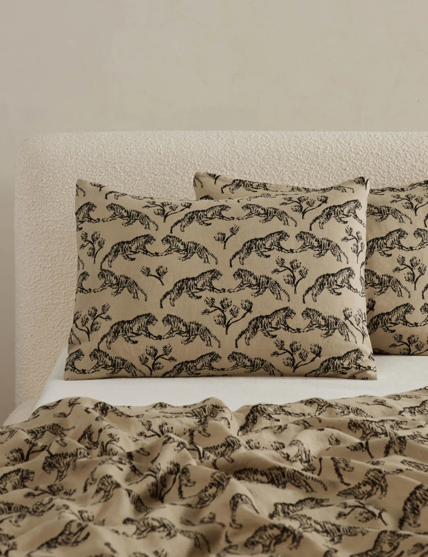 Vintage inspiration meets sustainable comfort in this hemp sham. Hemp is a forgotten fabric that is in revival because of its sustainable impact and durable fibers—meaning your bedding lasts longer. Drawn by Sarah’s son and styled into an intricate motif, the tiger print offers graphic intrigue for a sophisticated feel—the perfect way to add depth and texture to your bedding. This sham is from our exclusive Sarah Sherman Samuel collaboration and features all the trademarks of her warm, edited style.