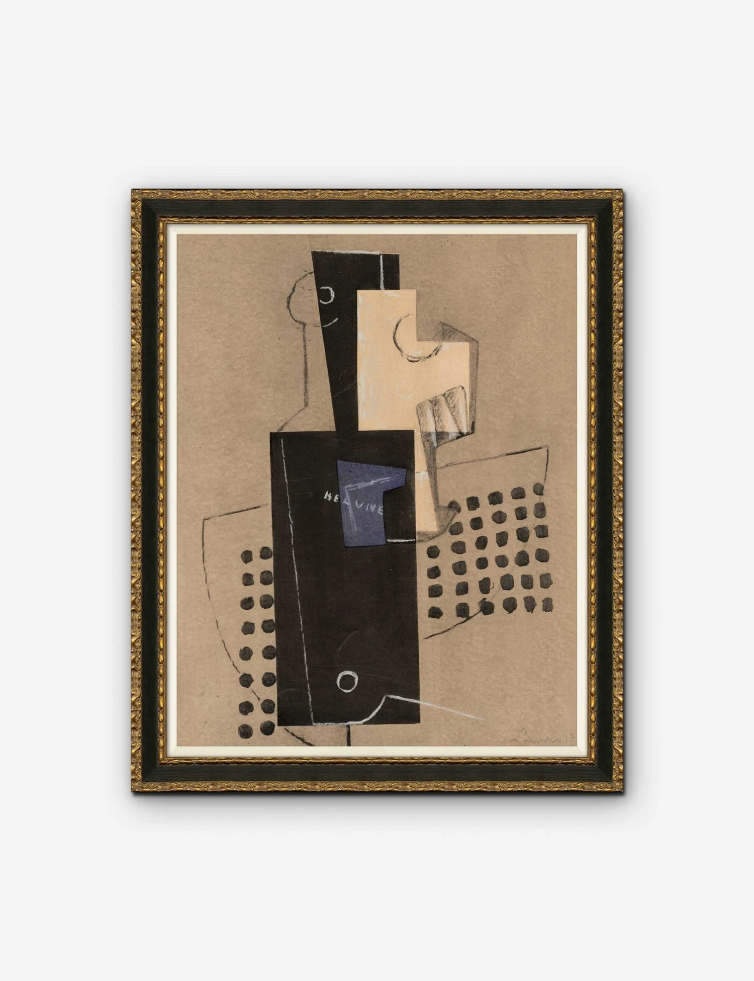 Using dark browns, grays, and black and a pop of blue, this wall artwork features an abstract illustration of a glass of water and traditional pitcher. Finished in a wood frame, this wall art print looks great styled in a kitchen or dining room.