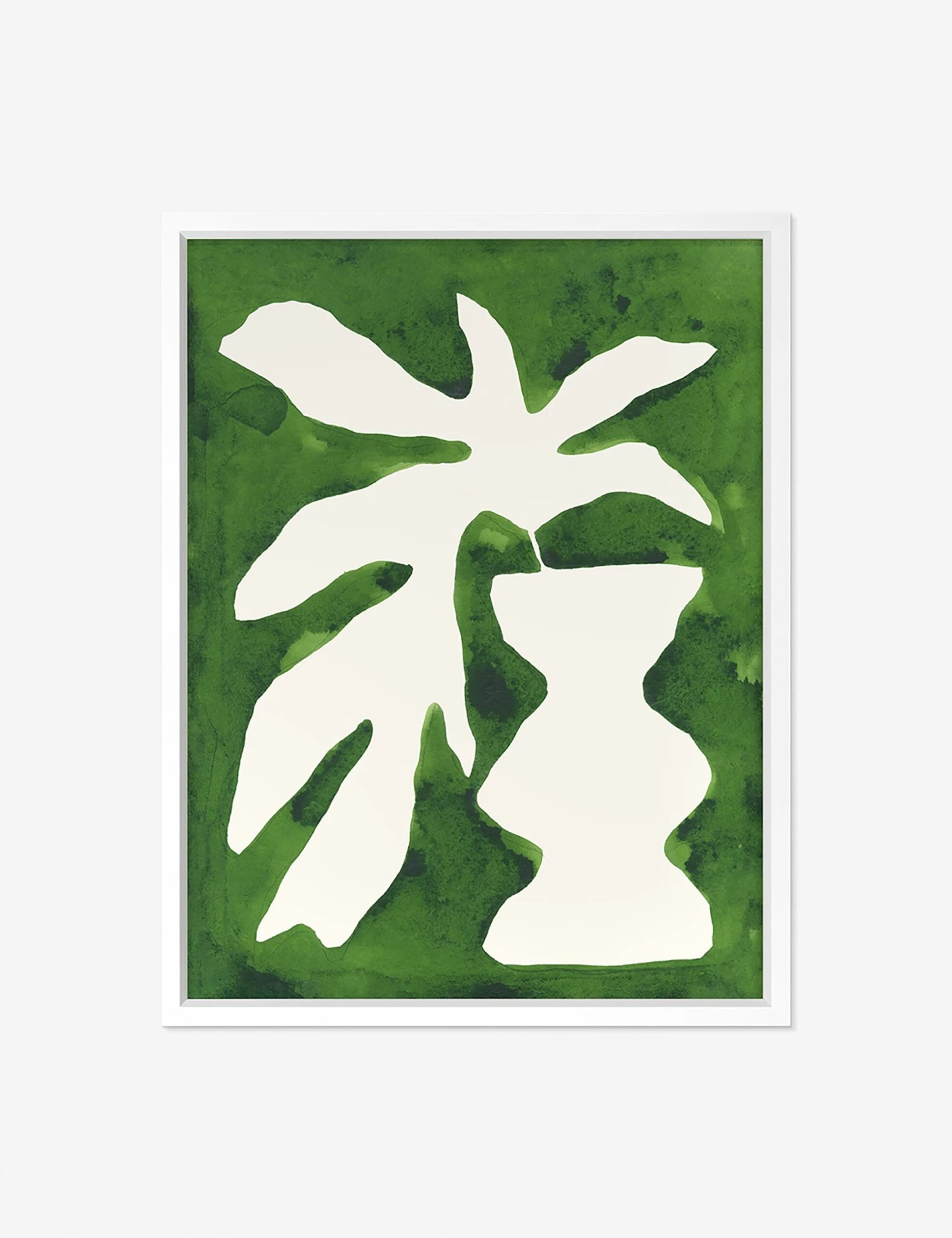 In this botanical silhouette print by Kate Roebuck, wavy lines bring a sense of play to a crisply modern style. The verdant backdrop offers a good dose of color to the room—perfect for wall decor in want of some rejuvenation. This minimalist wall art inspires a casual air set for sophistication.