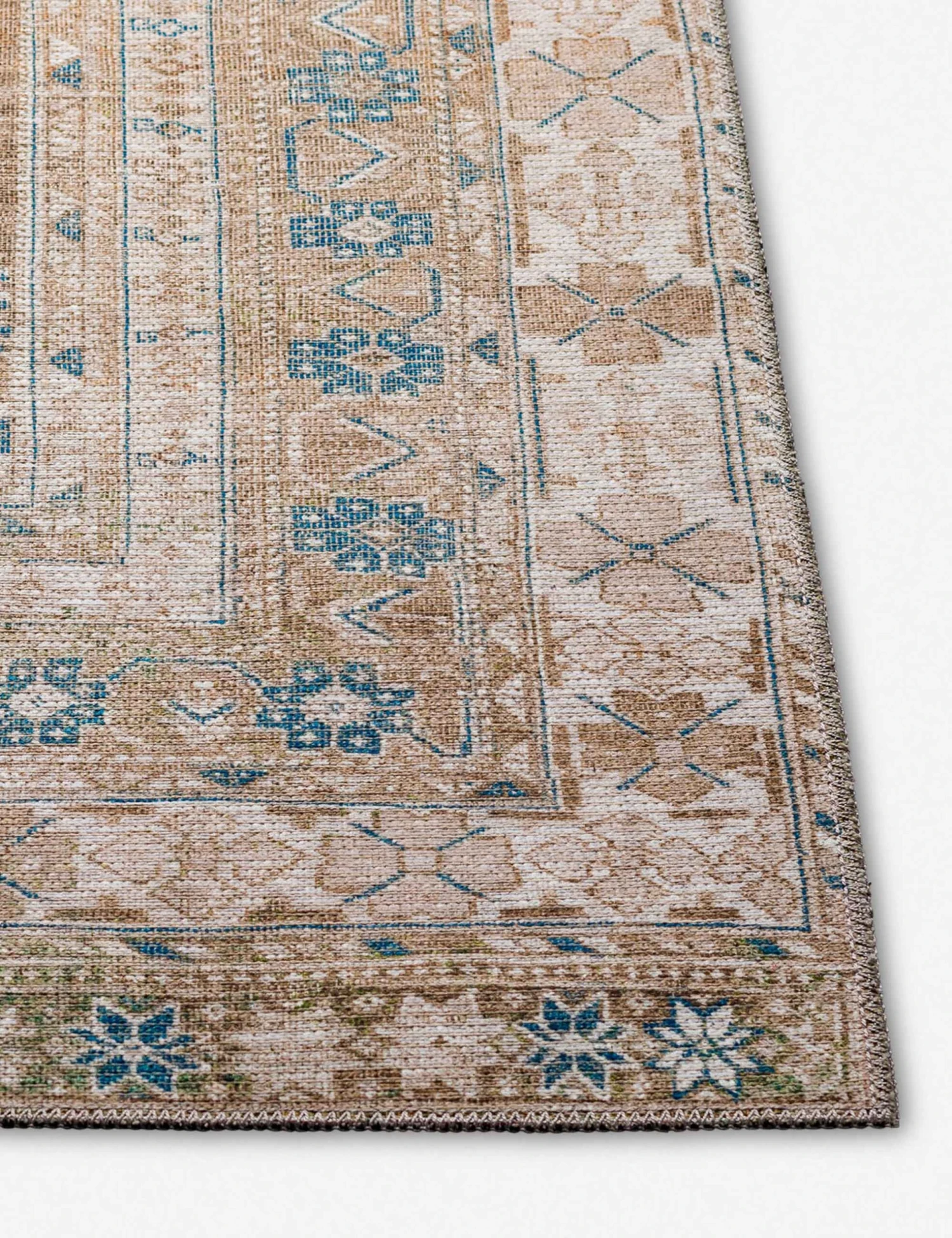 A traditional-inspired pattern is machine-woven with a synthetic fiber blend for a timeless rug design full of functional appeal. Ground your space with this antique-inspired floor rug for a versatile base to build a transitional style from.